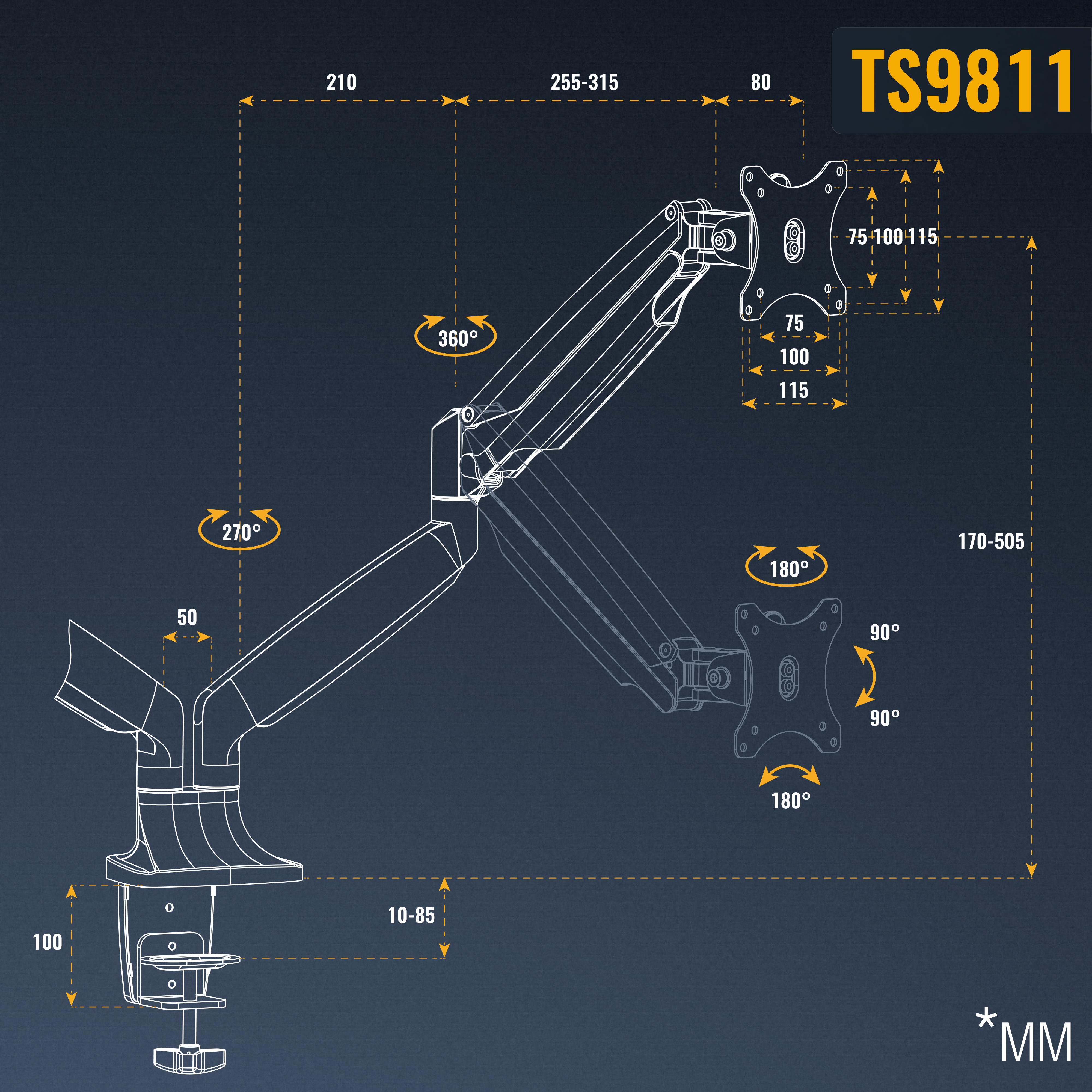 2 Monitore TV Tischhalterung schwenkbar neigbar mit Doppelarm TS9811