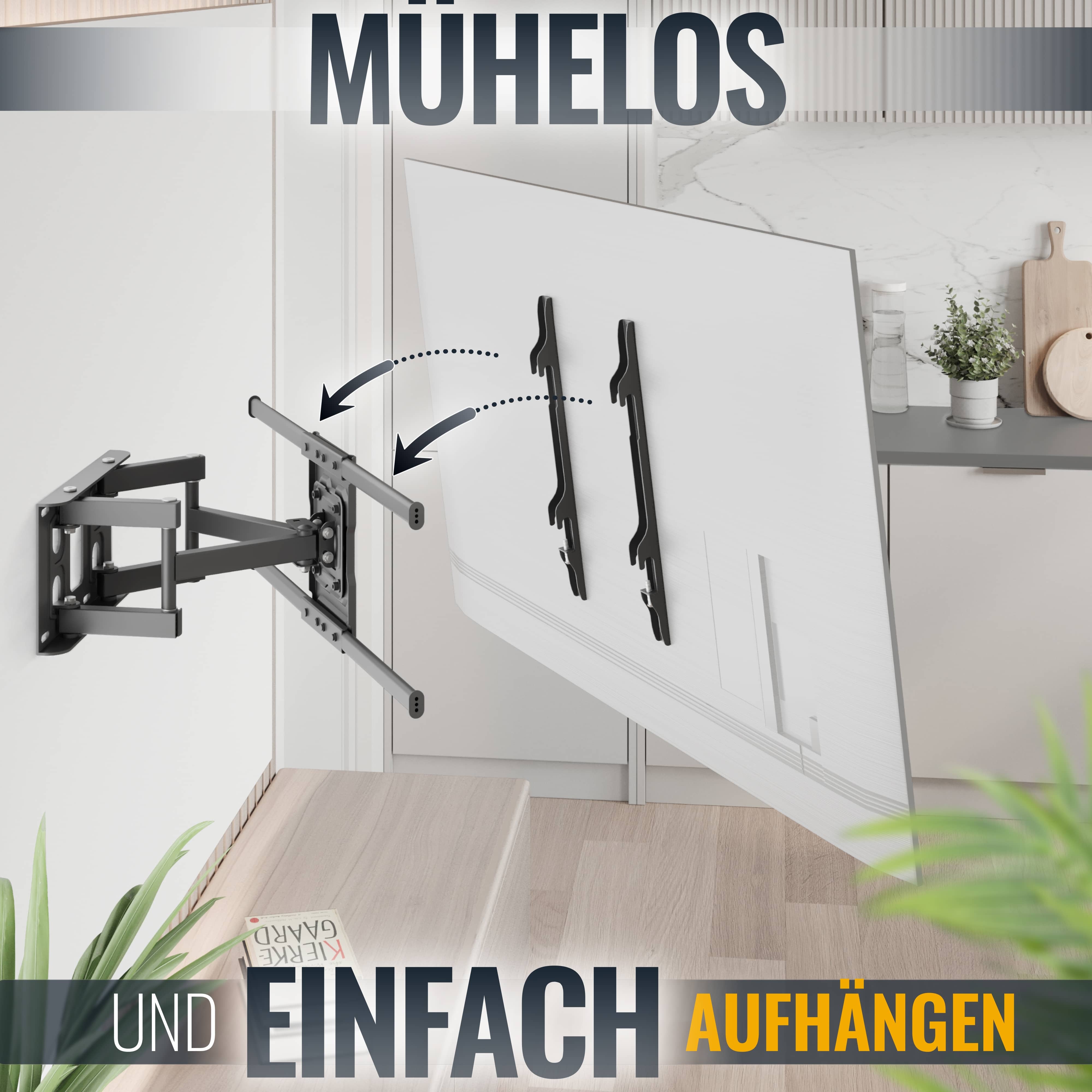 - Durch den Wandabstand von 70mm - 375mm sind TV oder Monitor im Raum oder in Wandnähe ausrichtbar. Mit einfachen Handgriffen ist die Halterung jederzeit ein- und ausziehbar.