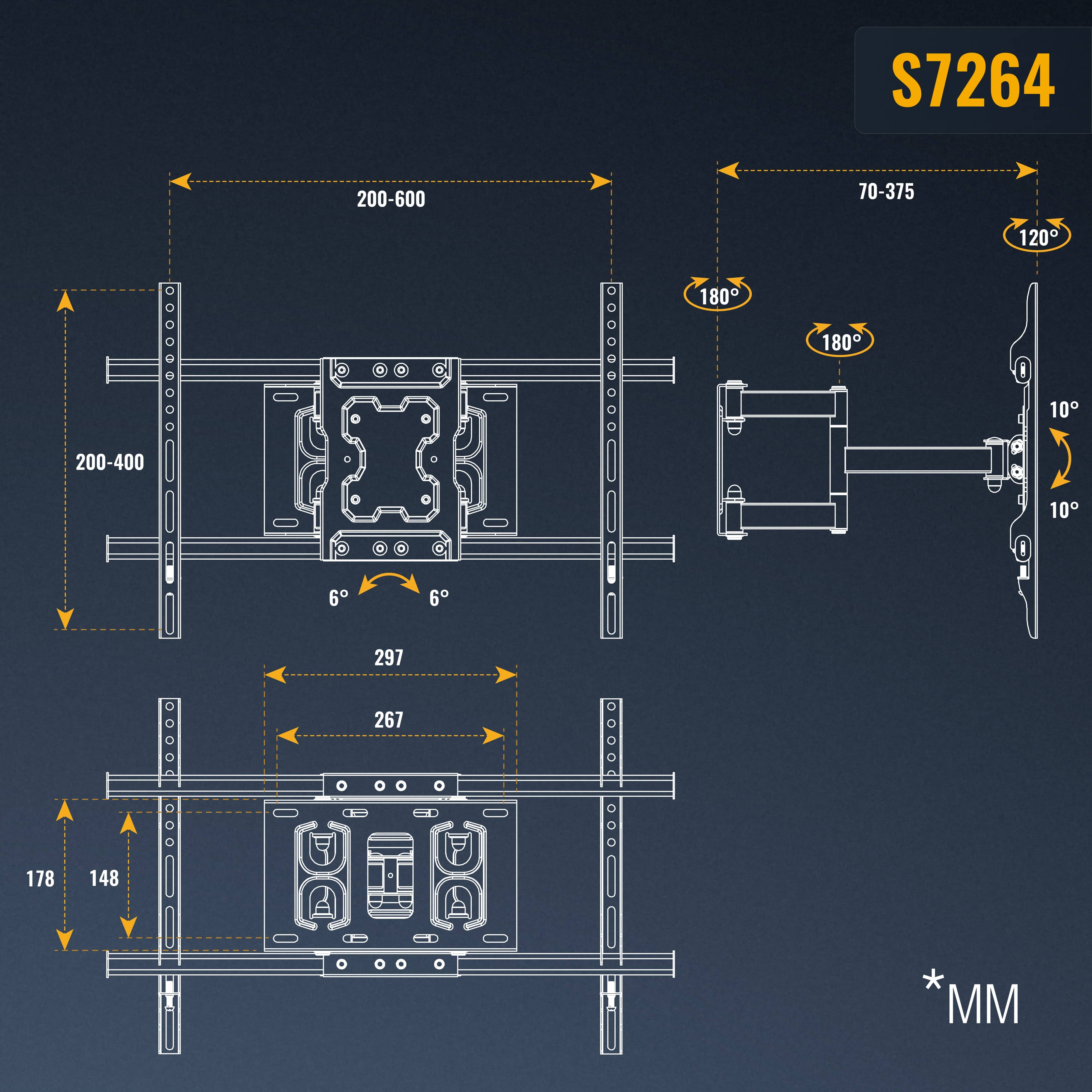 Ausziehbare Wandhalterung für Fernseher schwenkbar Doppelarm S7264