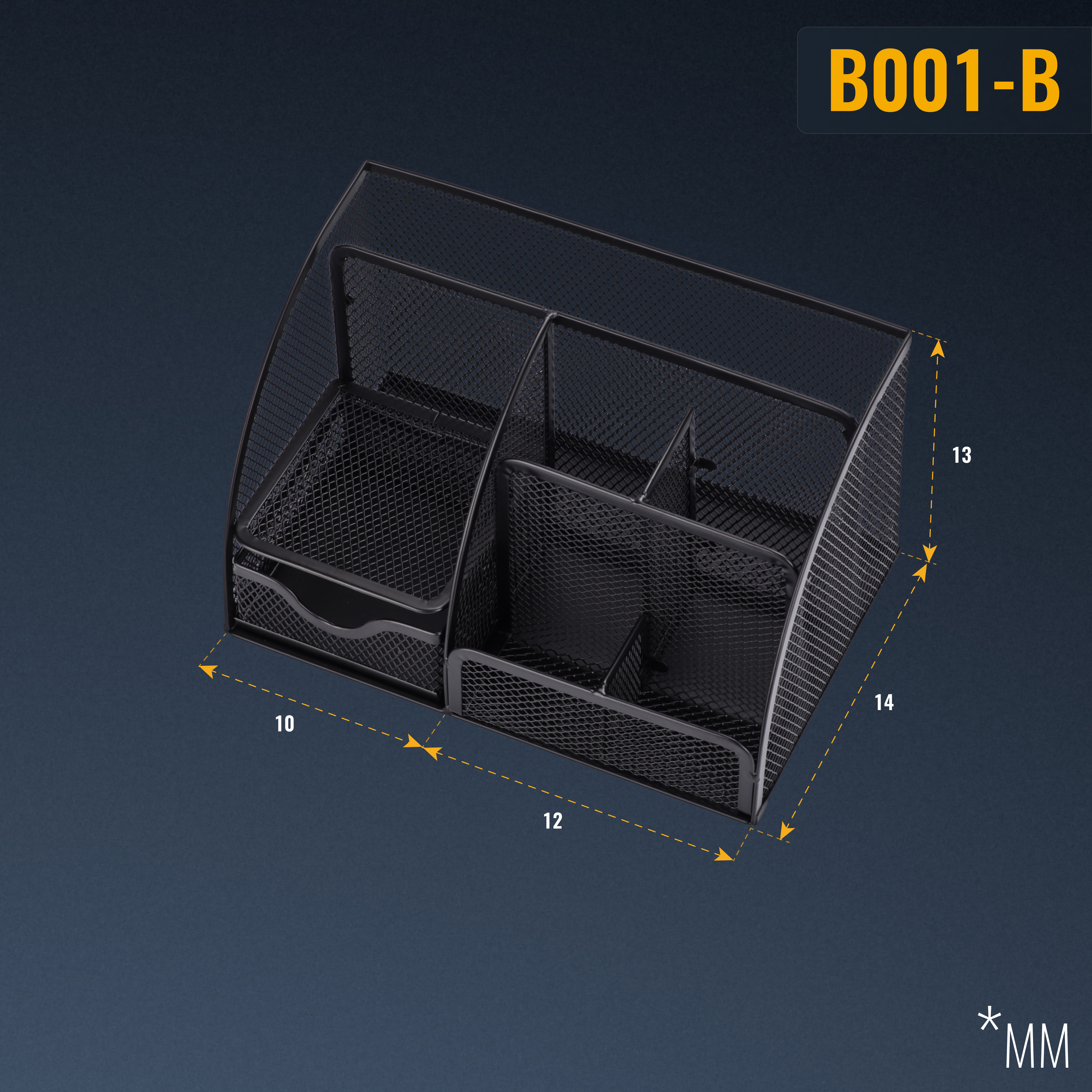 Dank des intelligenten Designs ist dieser Organizer einfach zu montieren und passt perfekt auf jeden Schreibtisch. Die schwarze Pulverbeschichtung verleiht ihm ein modernes und ansprechendes Erscheinungsbild, das zu jeder Büroumgebung passt.