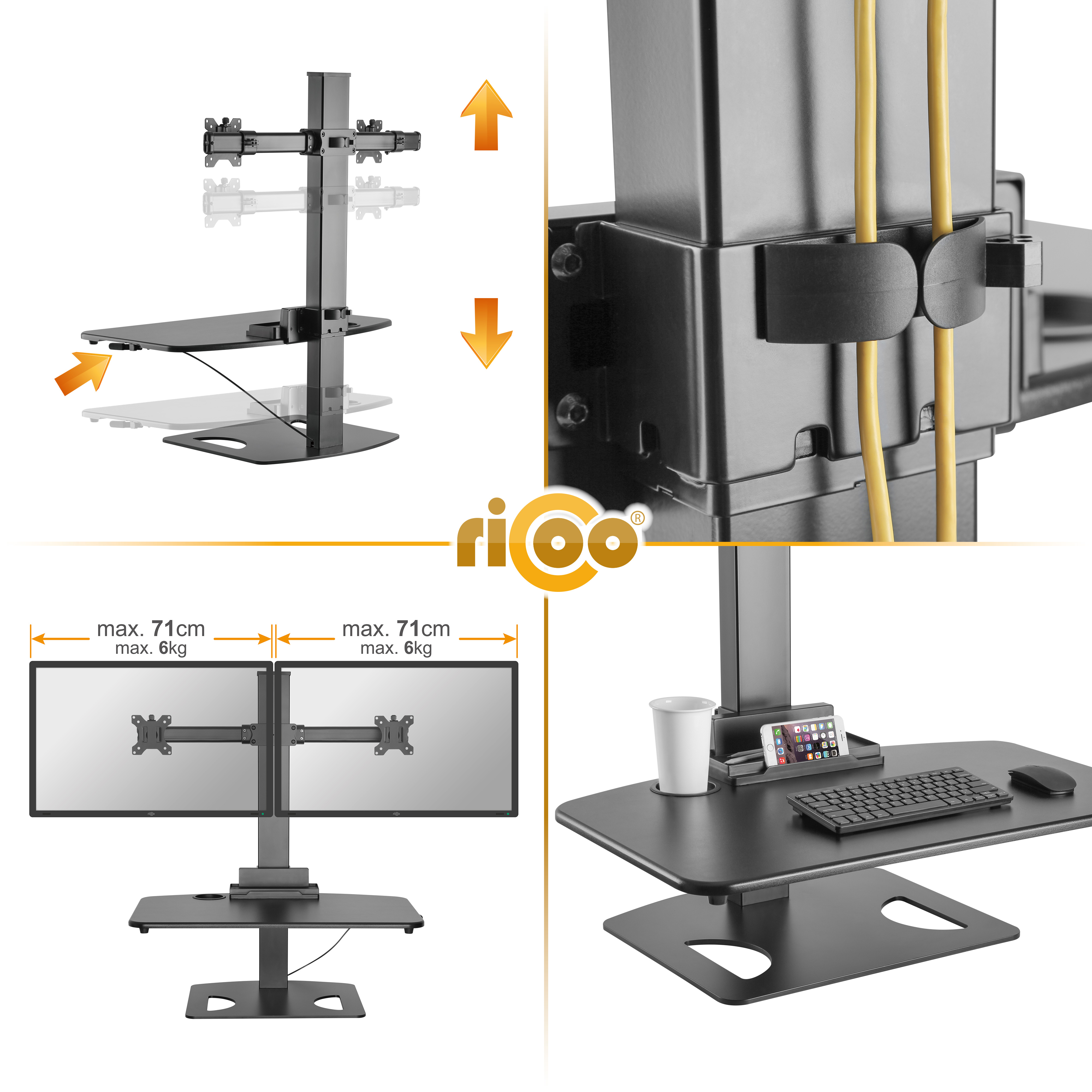 - Monitoranzahl: bis zu 2 (bis max. 710mm Monitorbreite je Monitor)