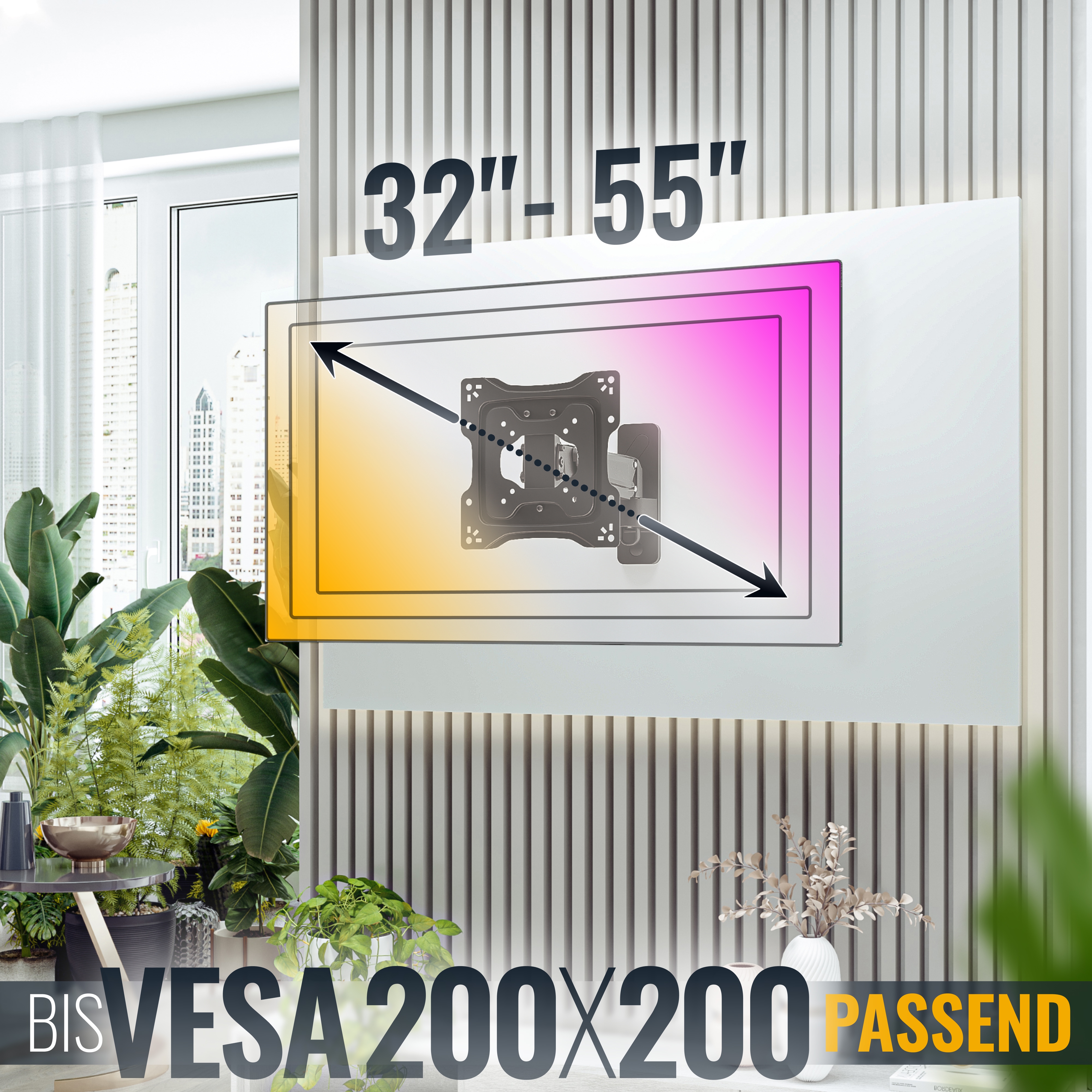 Eine Bildschirmhalterung ist nicht nach einer Diagonale anzupassen, sondern nach sogenannter VESA-Norm (Lochabstände am Fernseher).
