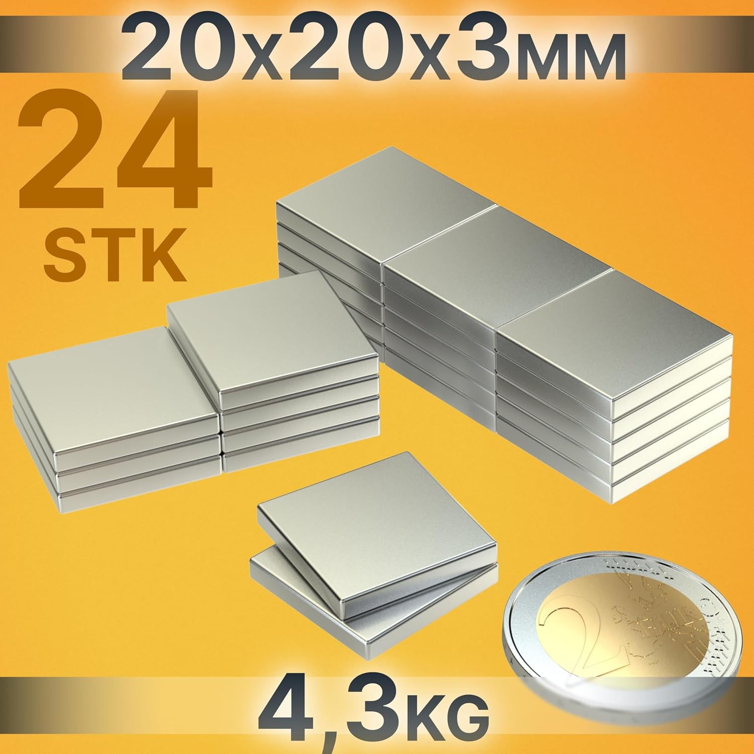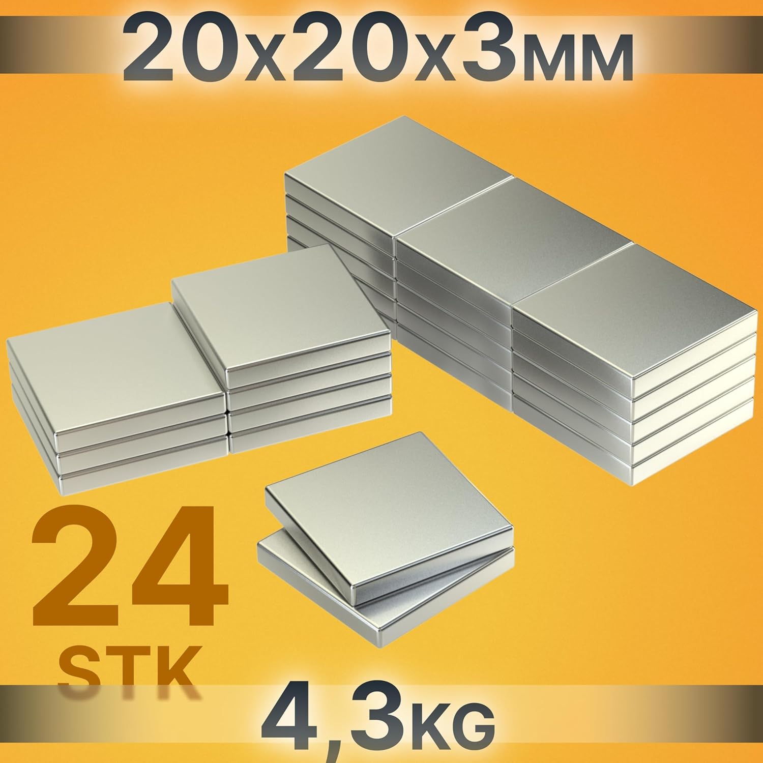 24 Stk Quader Neodym Power Magnet 20x20x3 mm N45 4.2Kg Werkstatt Garten Modellbau