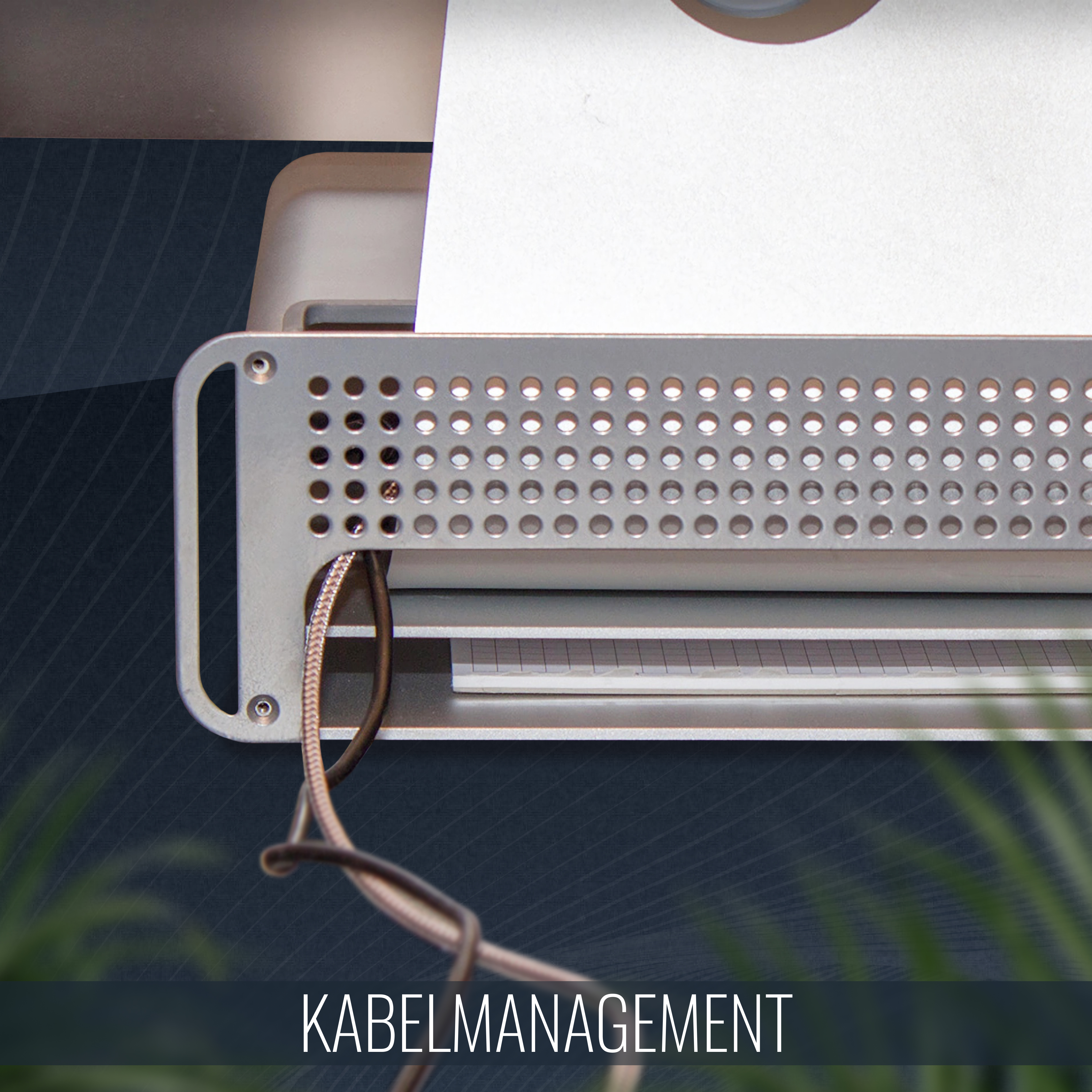 - Ausstattung: mit Kabelmanagement und Stauraum