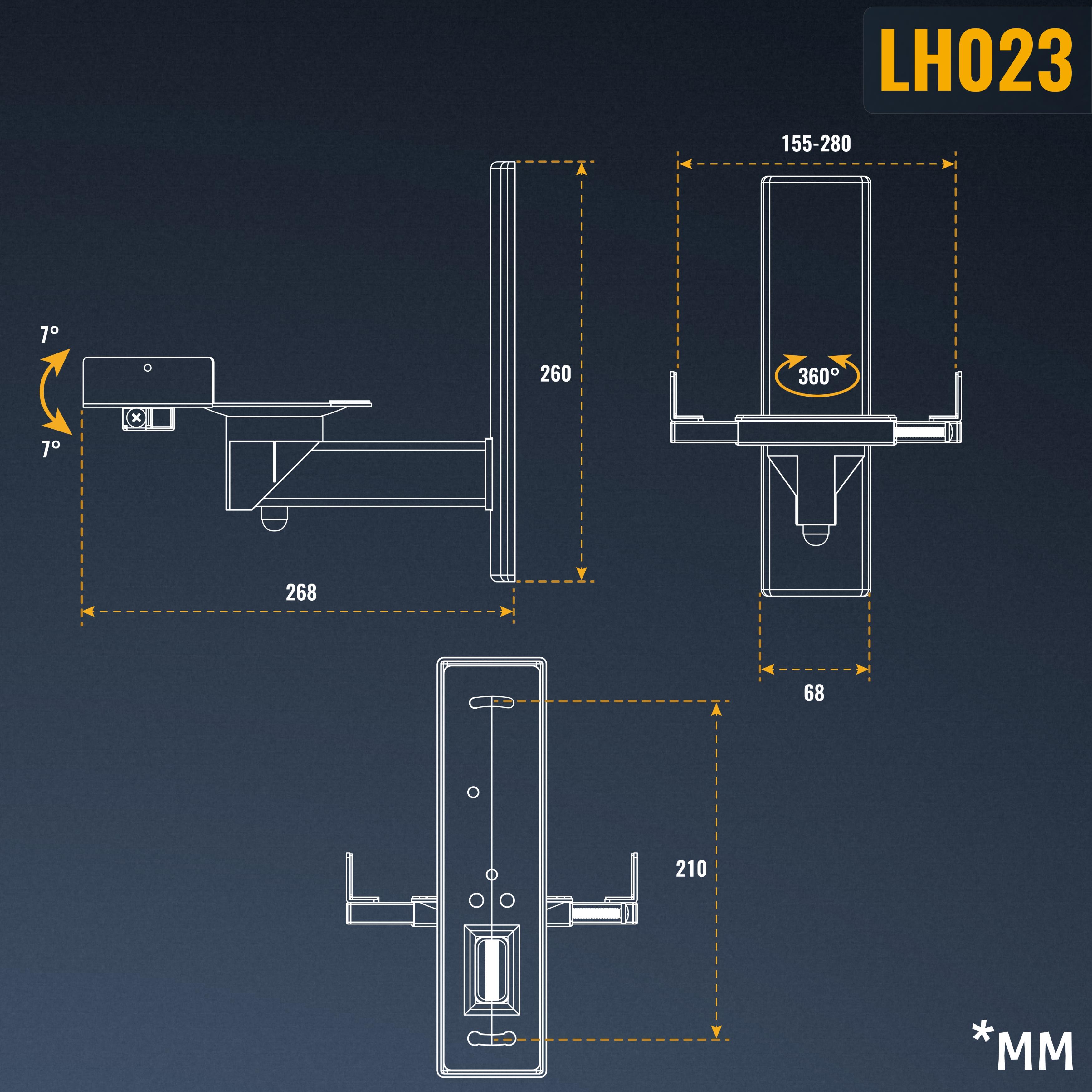 Die Wandhalterung kann um bis zu +/-7° nach oben oder unten geneigt werden. So kann der Lautsprecher genau nach Ihren Wünschen ausgerichtet werden.