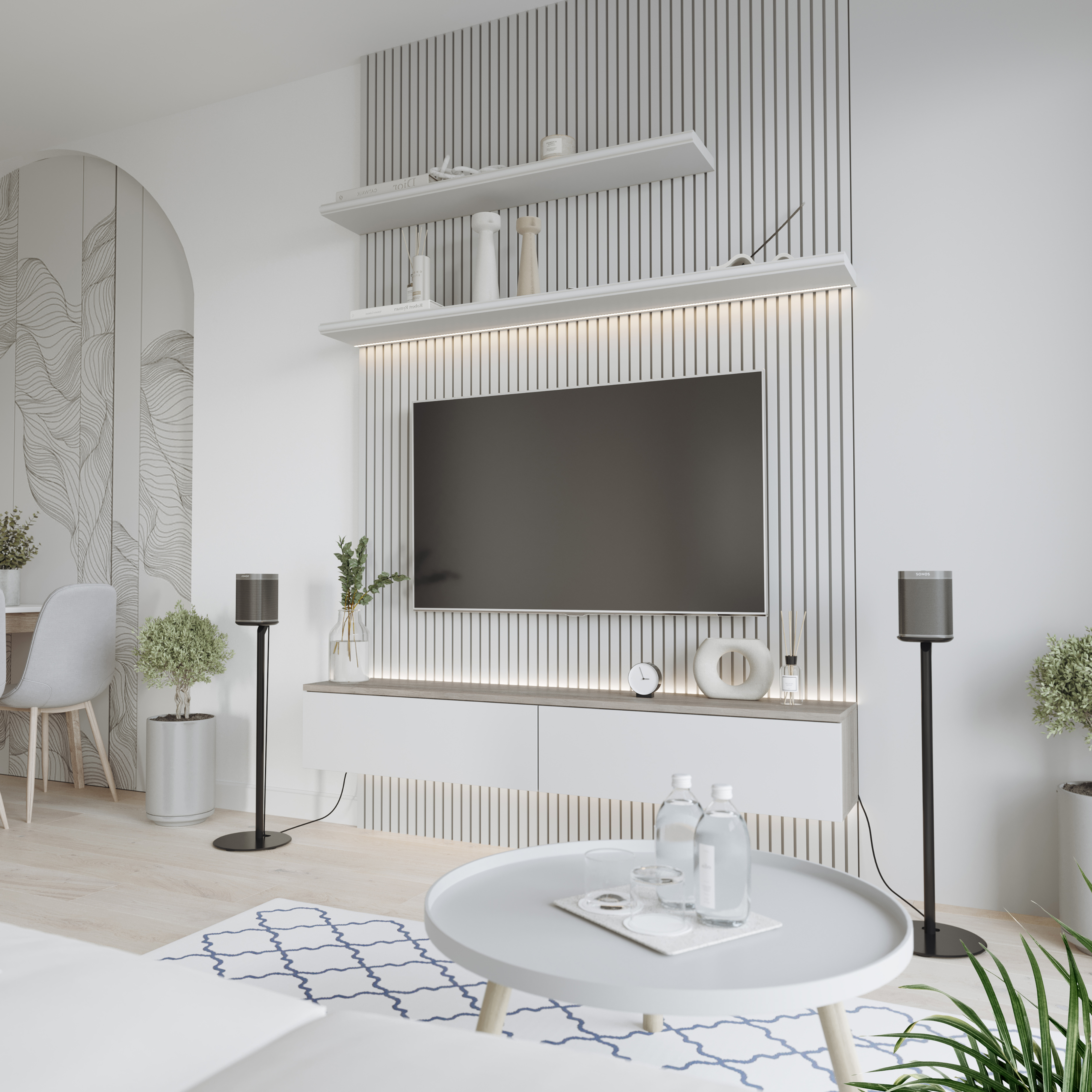 Ihre Lautsprecher sind mit wenigen Handgriffen montiert. Die Höhe der speziell für Sonos One & One SL Boxen entwickelte Halterung beträgt 72cm und bietet dadurch eine optimale Bedienhöhe.Sie trägt ein max. Gewicht von 3 Kg.