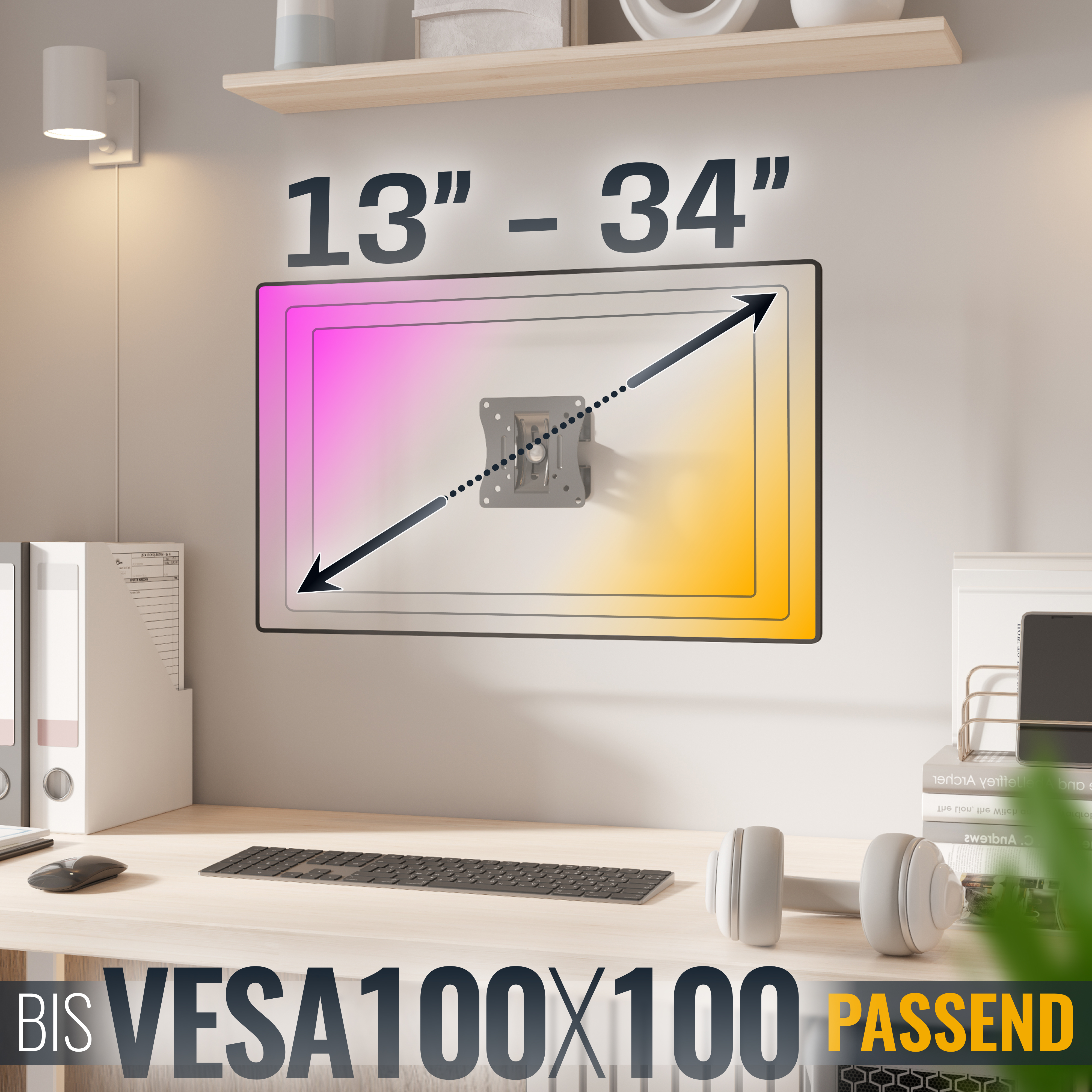 - Geeignet für TV-Geräte, PC-Monitore mit Bildschirmdiagonale ca. 33 - 74cm (13"-29"). Bitte die Lochabstände nachmessen! (Auch für größere Geräte passend, einfach die Befestigungslöcher nachmessen)