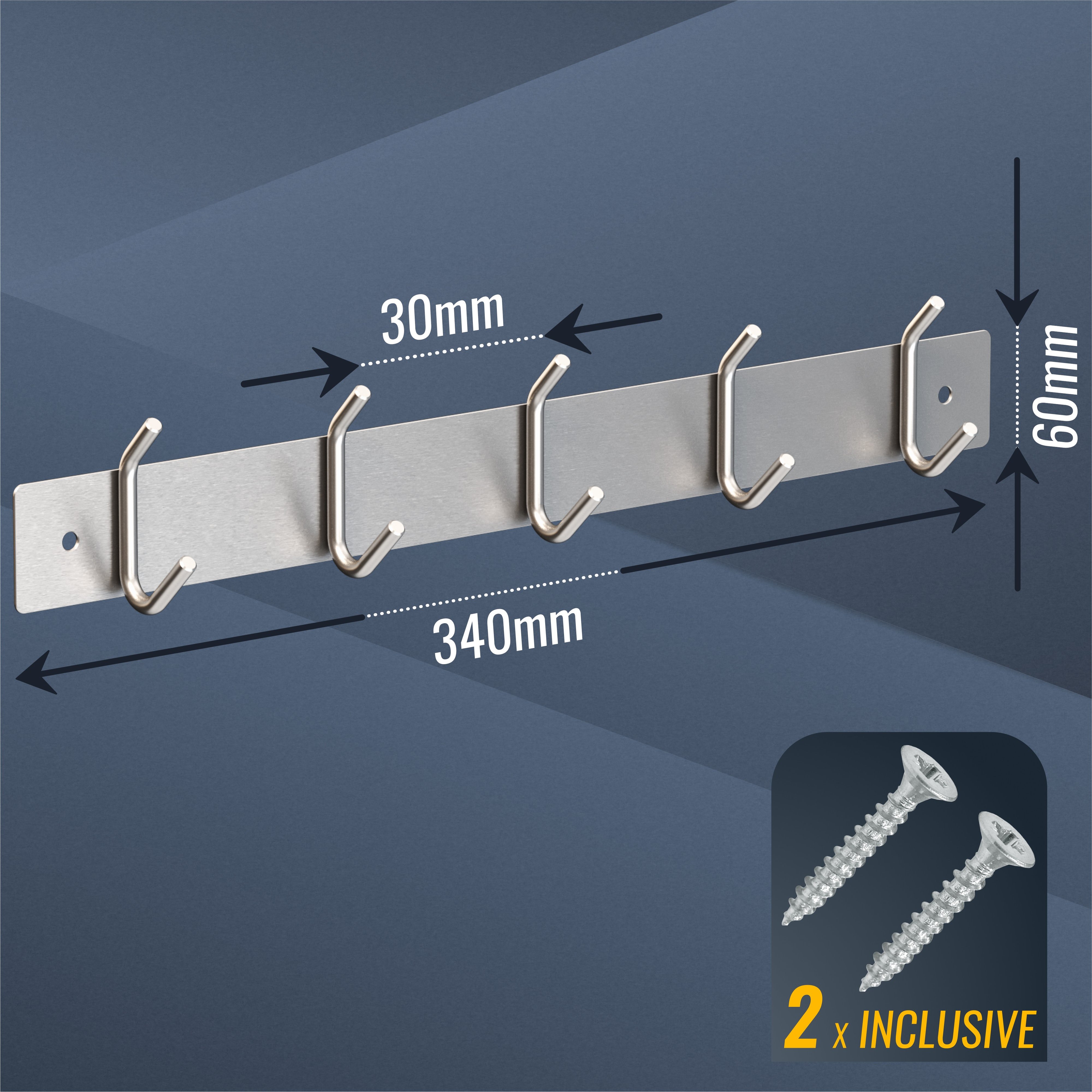 • Maße BxTxH / 5-Haken Version: 34 x 3 x 6 cm