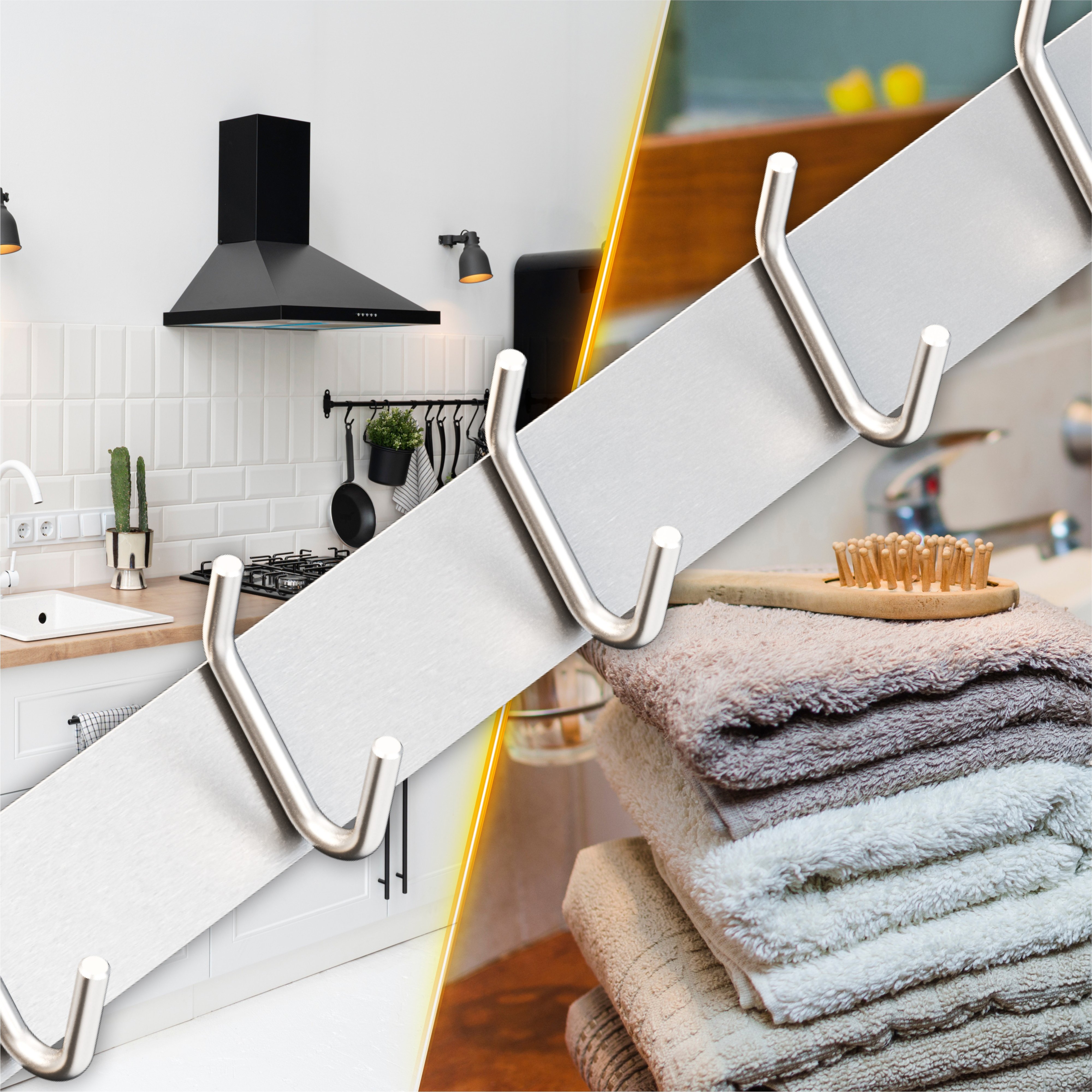 RICOO Hakenleiste aus Edelstahl - Platzsparende Wandgarderobe MH028