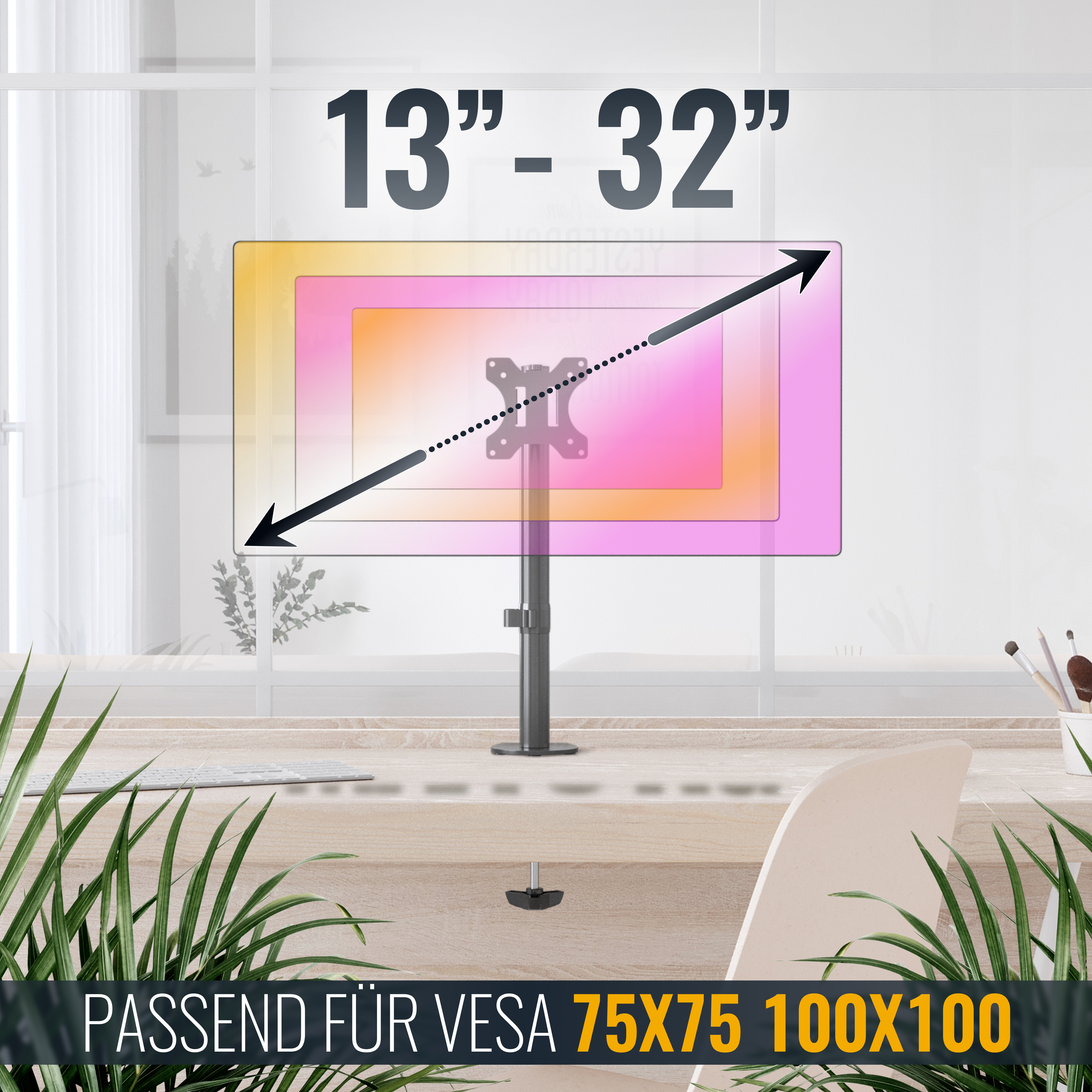 - Unterstütze VESA-Normen (in mm): 75x75 | 100x100