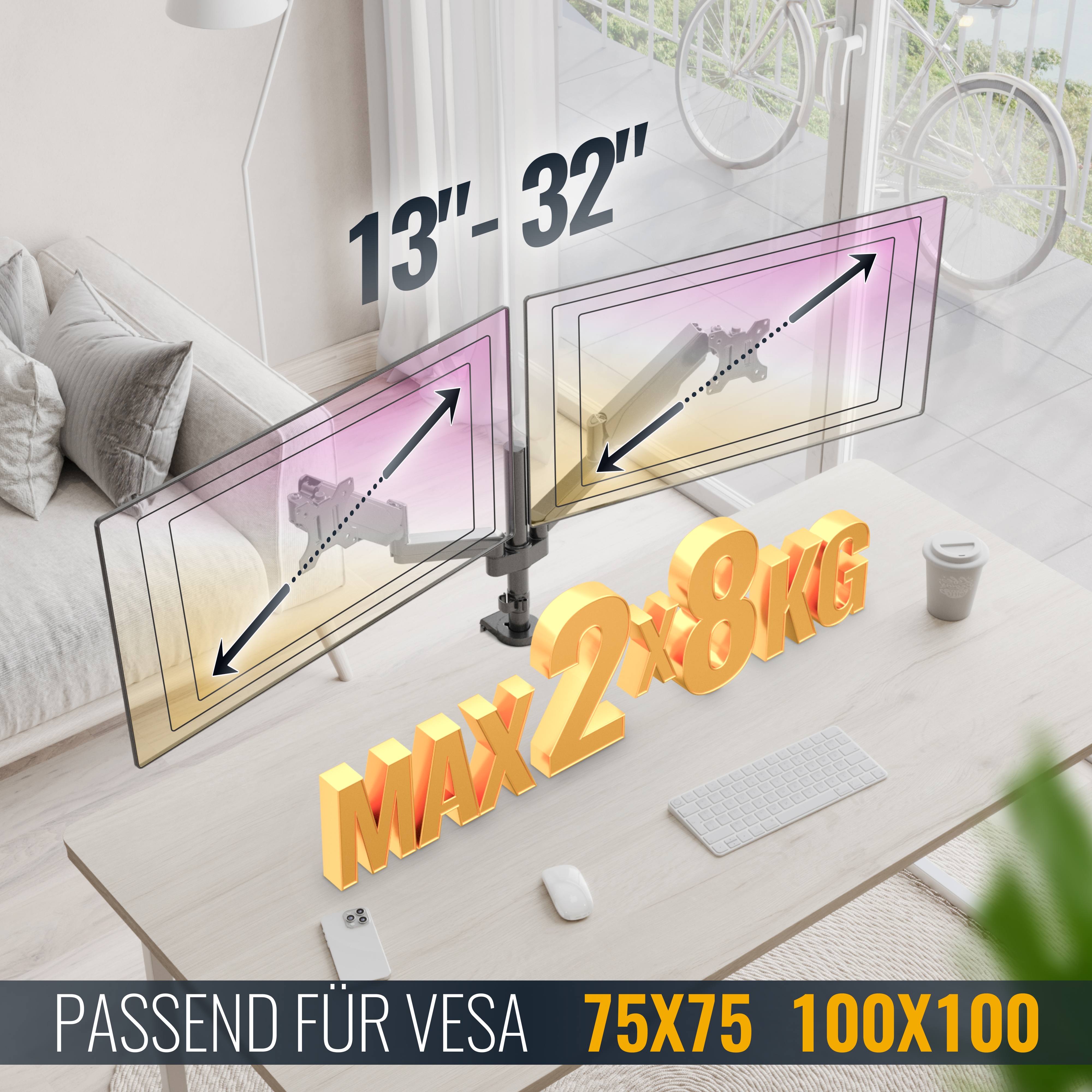 Monitor Tischhalterung mit Gasdruckfeder für 2 Bildschirme TS3911
