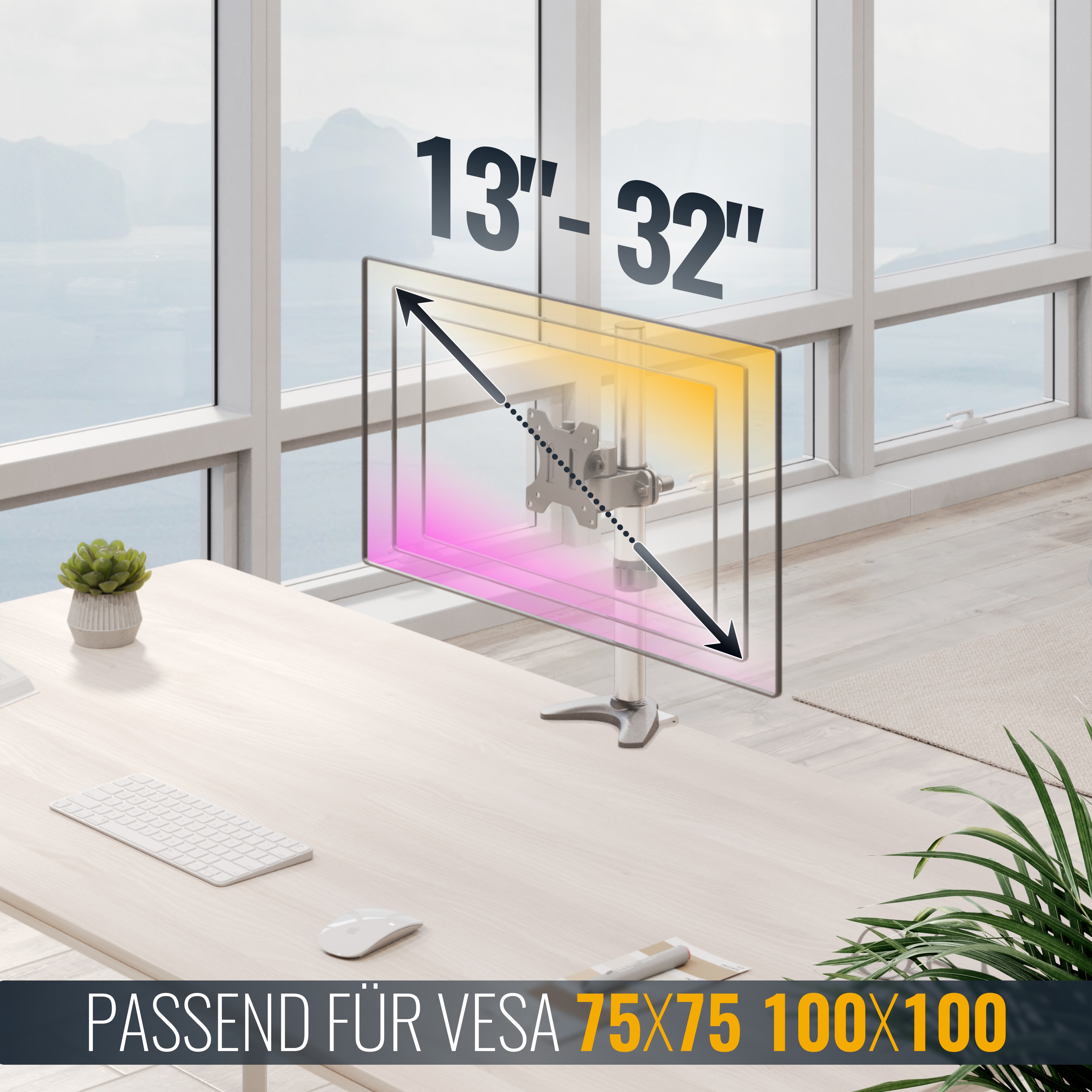 Bei jeder Bildschirmhalterung ist immer angegeben, welche VESA-Norm (Lochabstände) diese Bildschirmhalterung unterstützt.