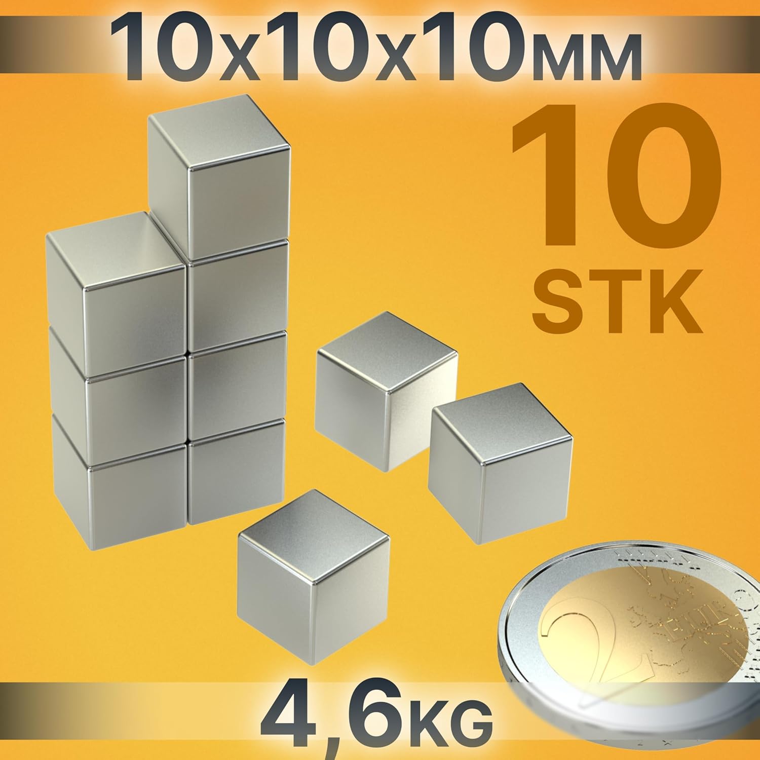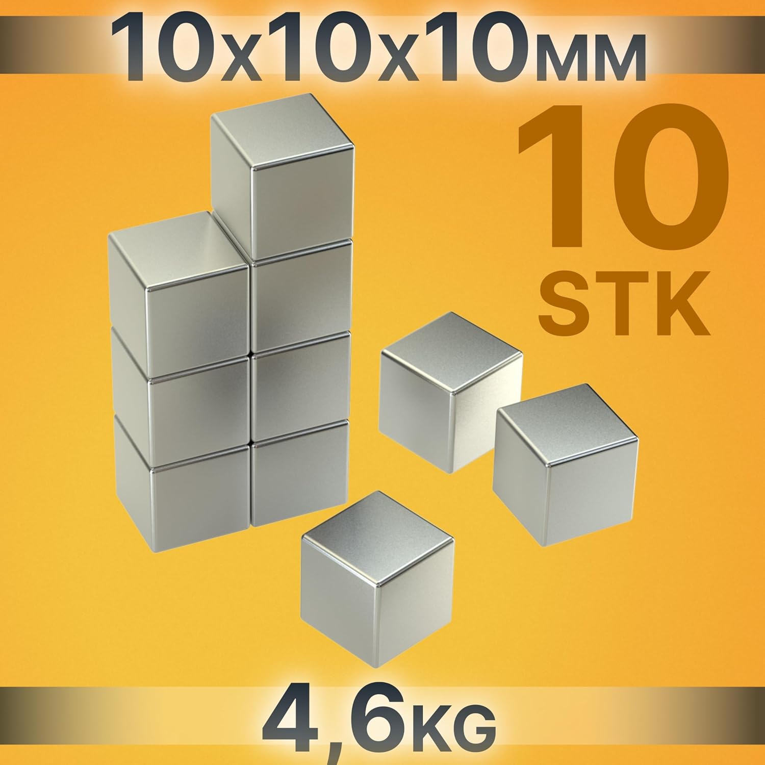 Neodym Power Magnet 10x10x10mm N45 4.6Kg 10stk.