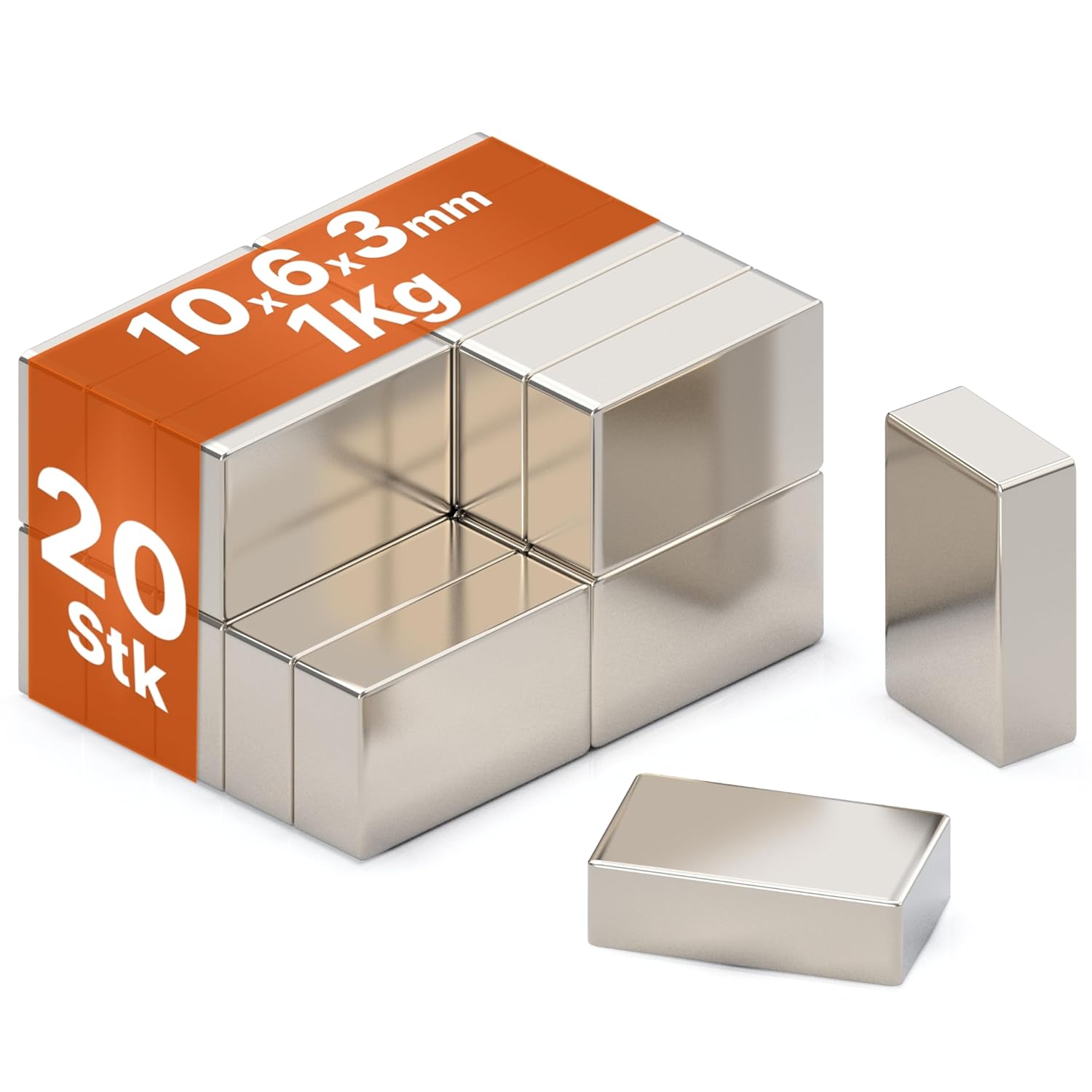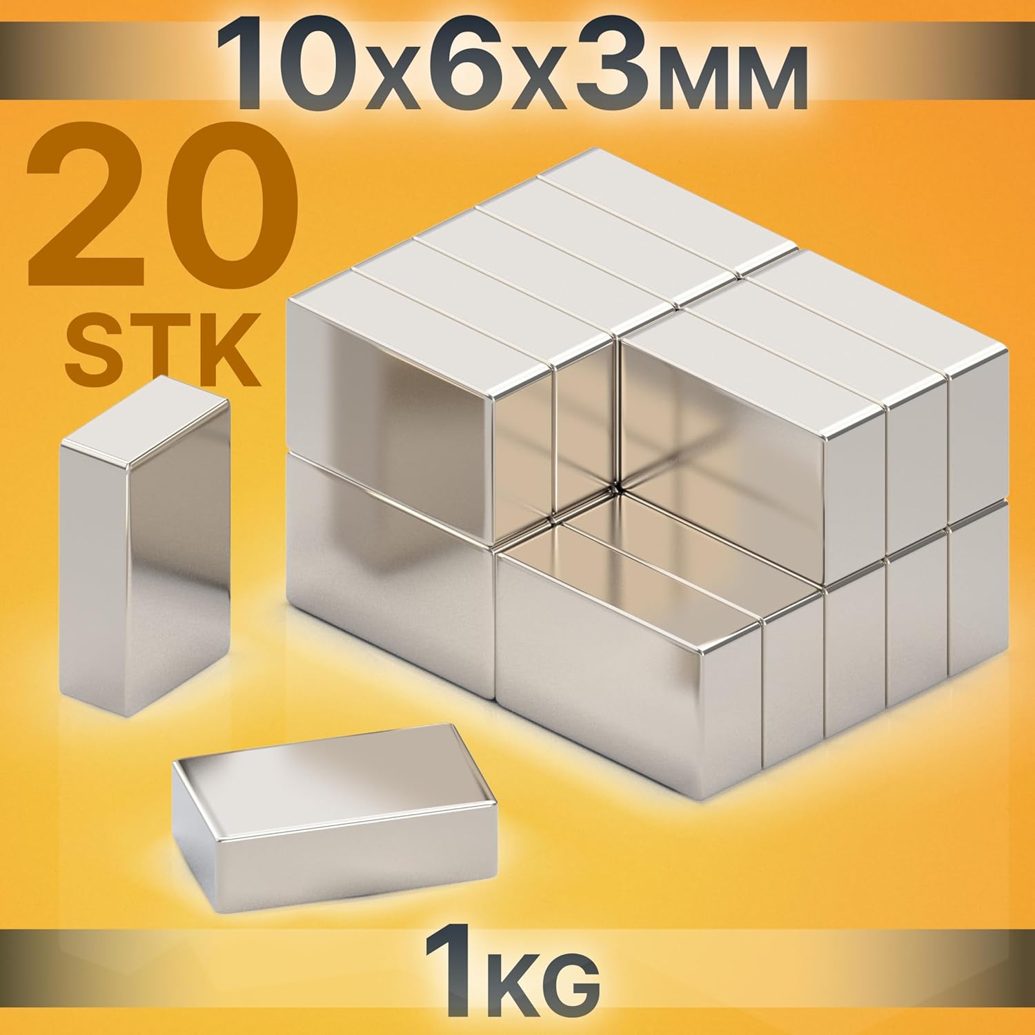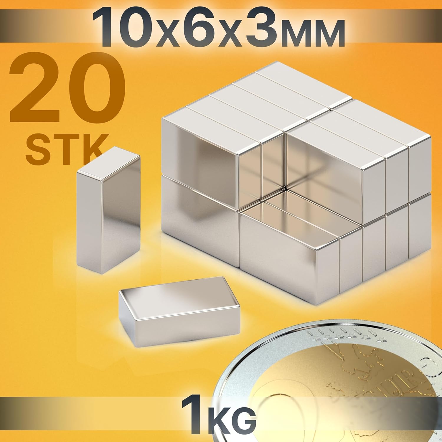 Neodym Power Magnet 10x6x3mm N45 1.1Kg 20stk.