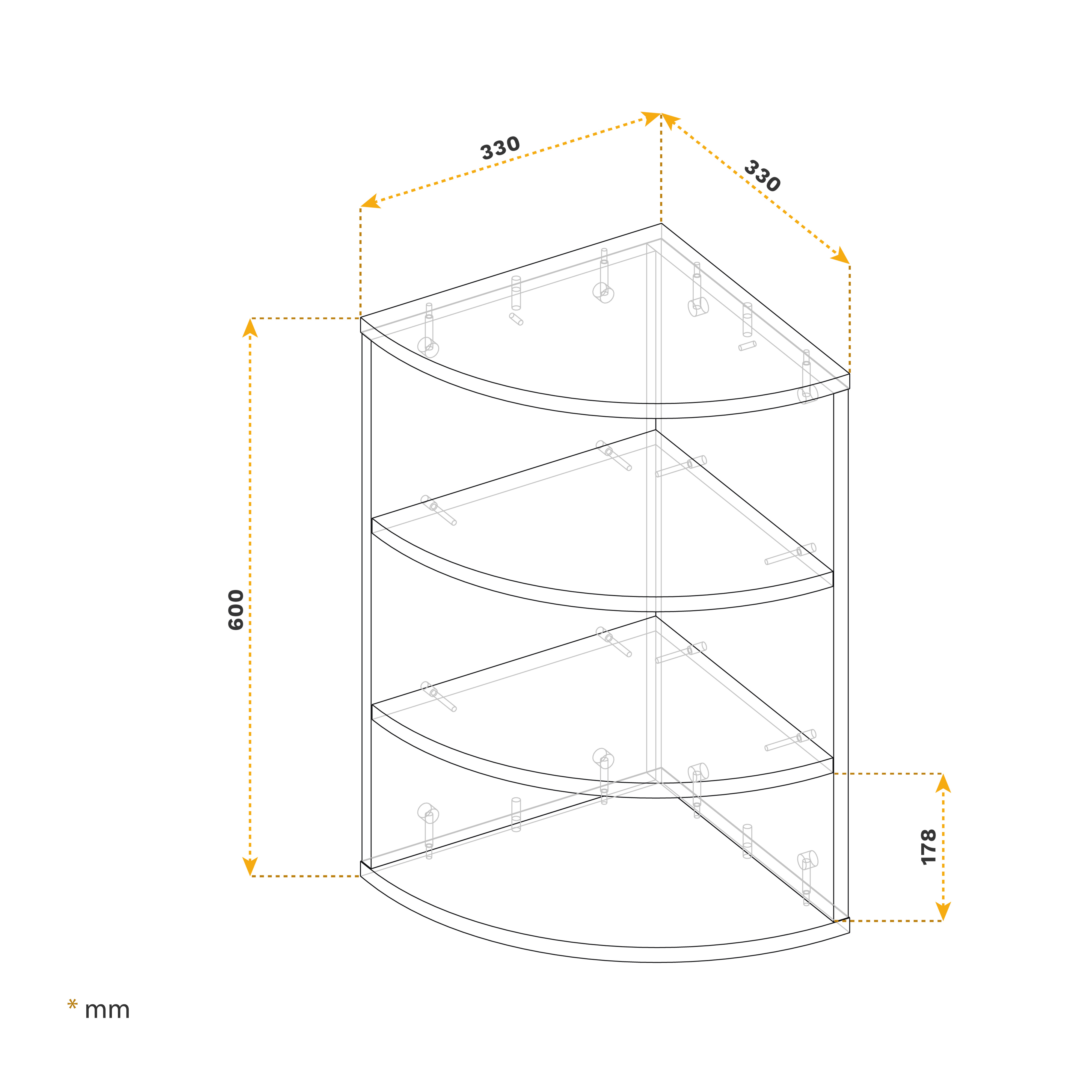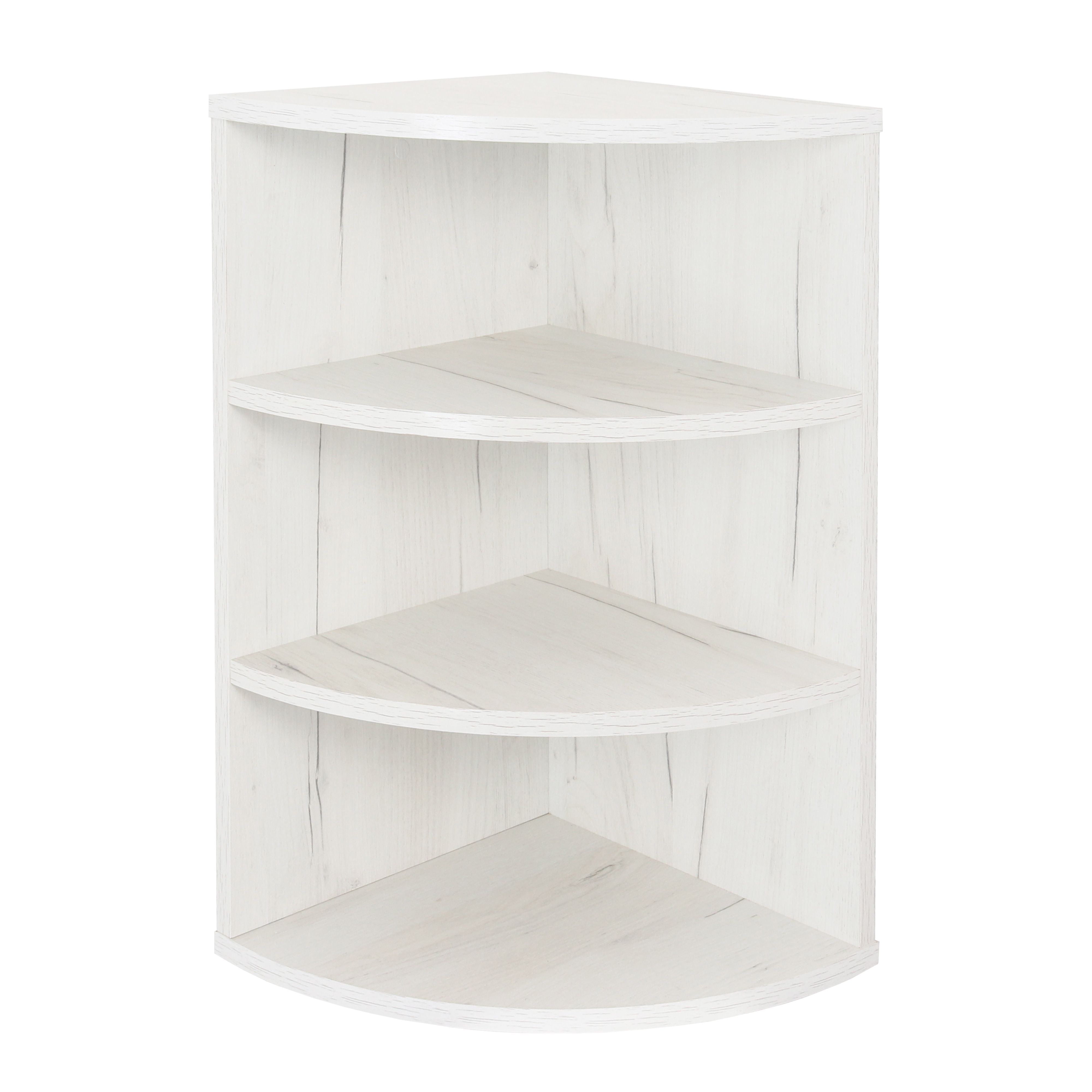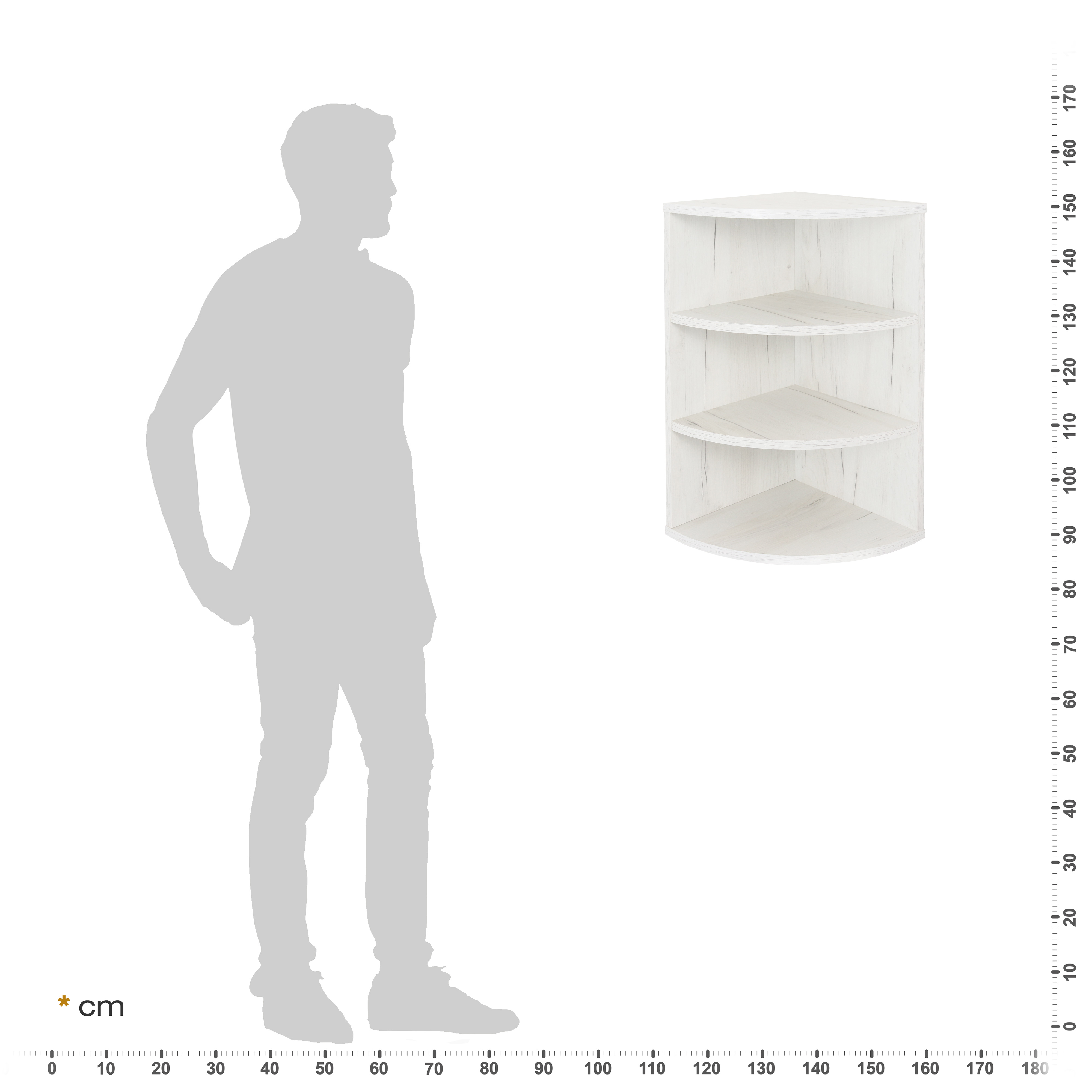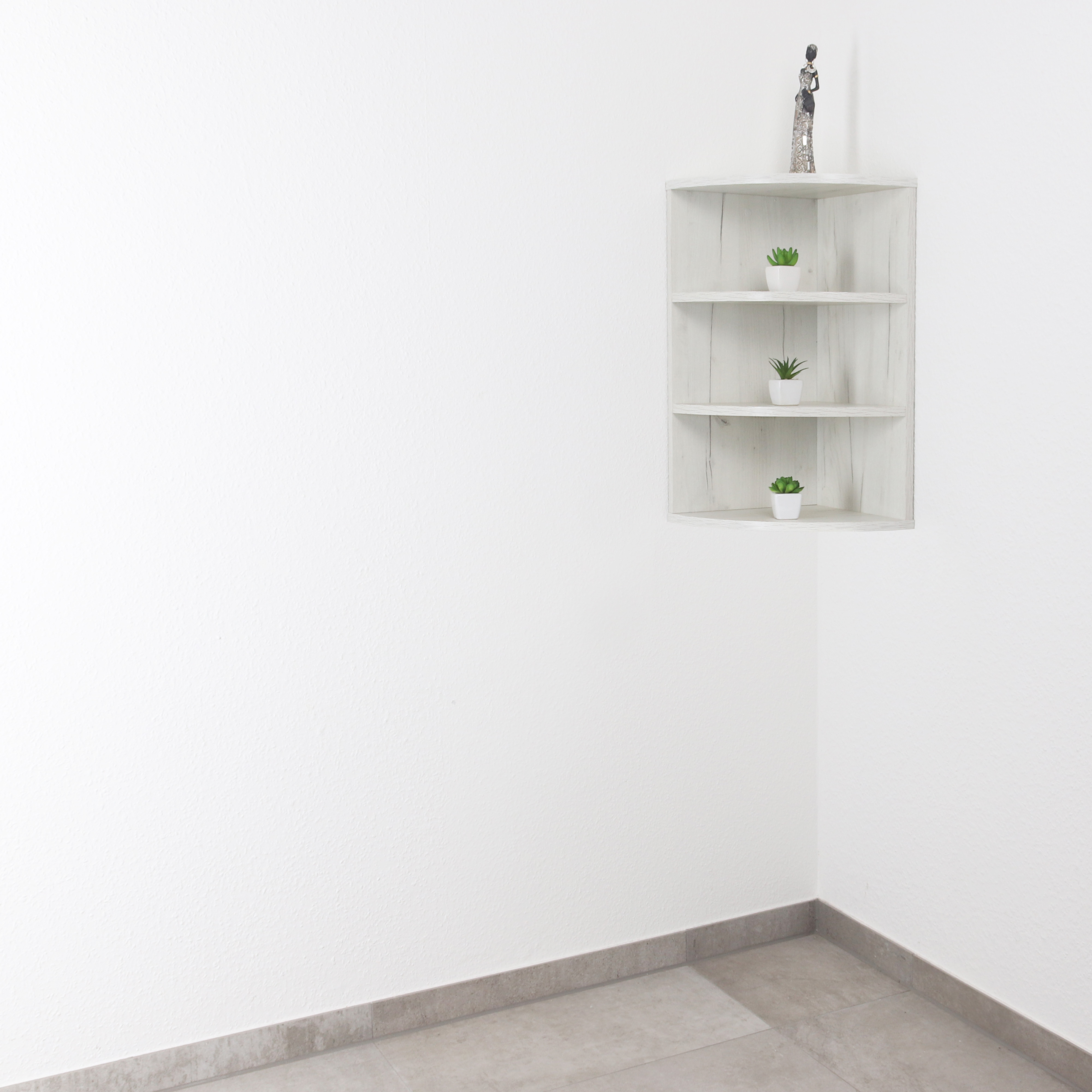 Dieses platzsparende Eckregal ist ein kleines hängendes Bücherregal. Das Hängeregal bietet Stauraum auf verschiedenen Ebenen. 3 Fächer bieten viel Platz für Dekorationen und mehr. Die abgerundeten und offenen Regale sind ideal für kleine Bücher, Spielzeug, Pflanzen oder Lautsprecher. Es kann auch als CD-Halter verwendet werden. Ein modernes, dekoratives Regal für das Wohnzimmer, Schlafzimmer, Kinderzimmer, den Flur oder das Büro oder auch für die Küchenorganisation, z.B. als Gewürz- oder Kräuterregal geeignet. Der Hängeschrank kann an der Wand montiert oder auf dem Boden aufgestellt werden. Horizontal ist das Regal auch für Aktenordner geeignet. Interne Schraubverbindungen und farblich abgestimmte Schraubenabdeckungen vervollständigen das Design. Dieses Möbelstück aus Spanplatten ist nur für den Innenbereich geeignet.