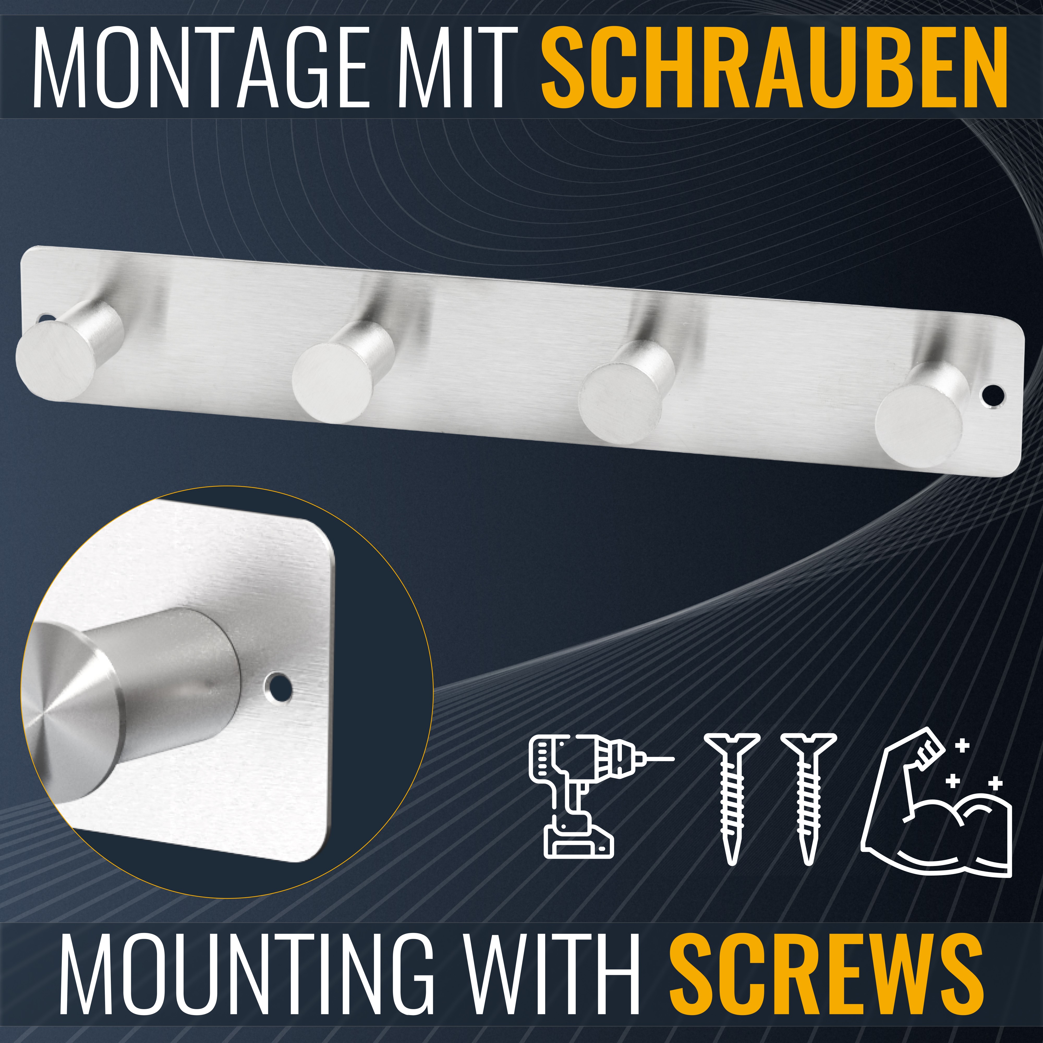 Gefertigt aus hochwertigem Edelstahl, verleiht dieser Wandhaken Ihrem Zuhause eine elegante und dennoch schlichte Note. Die robusten Stahlhaken gewährleisten Langlebigkeit und Zuverlässigkeit.
