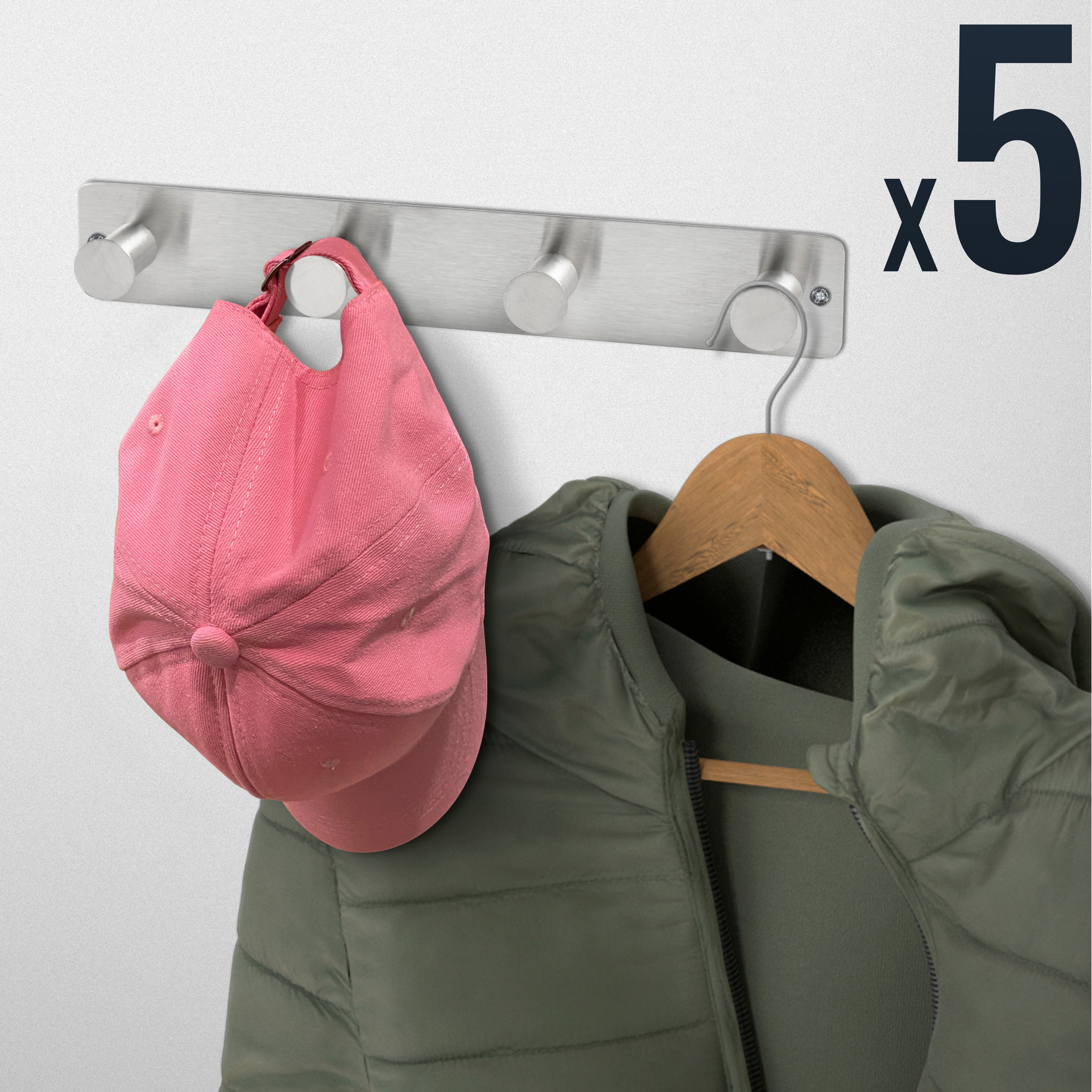 RICOO Platzsparende Wandgarderobe Hakenleiste aus Edelstahl - MH025