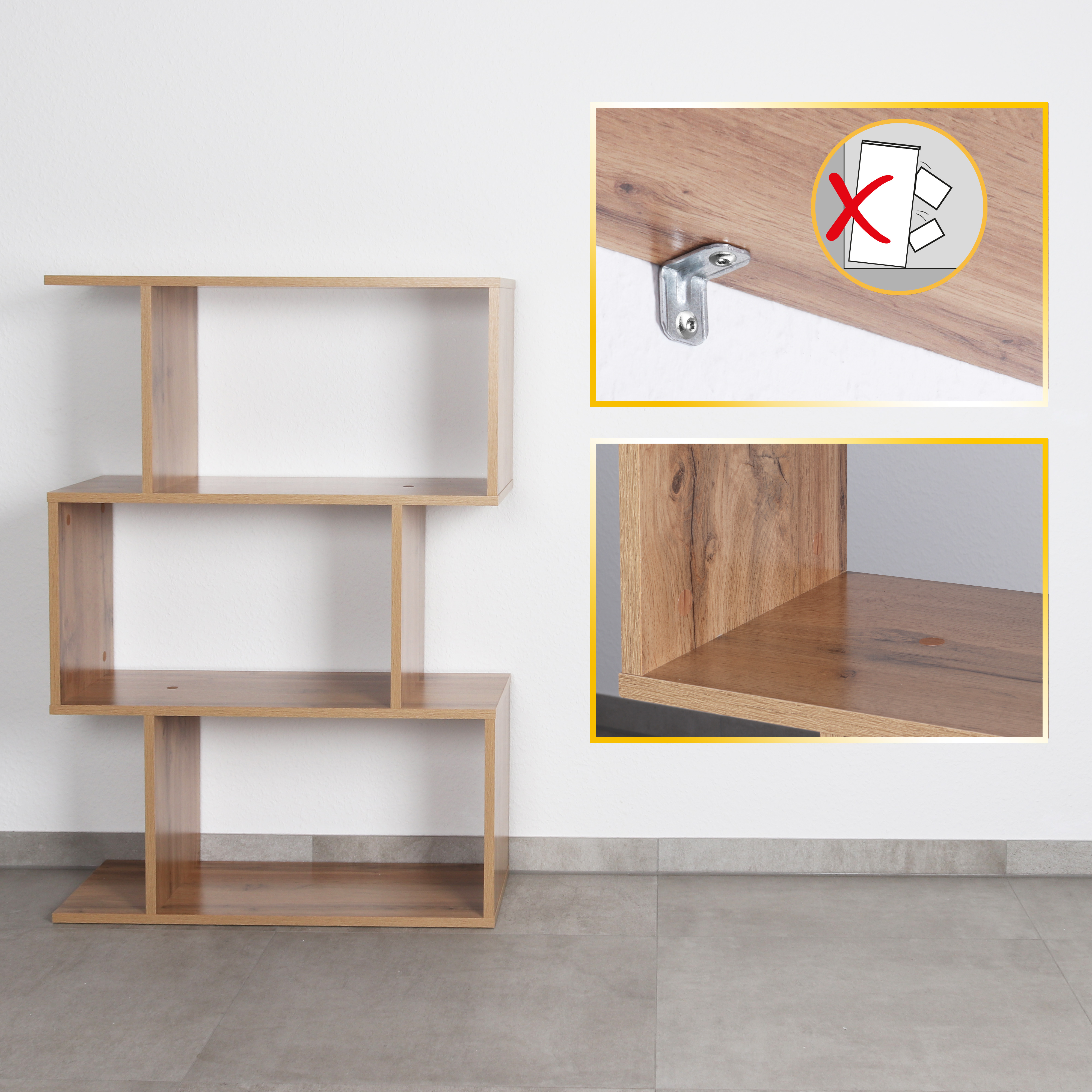 Unser schickes, modernes und schmales Standregal mit 3 Fächern bietet viel Platz für Dekorationen und mehr. Die Regale sind ideal für Bücher, Spielzeug, Pflanzen oder Lautsprecher. Es kann auch als CD-Ständer oder DVD-Regal verwendet werden. Modernes und dekoratives Aufbewahrungsregal mit viel Stauraum. Ideal fürs Wohn-, Schlaf- und Kinderzimmer, den Flur oder das Büro oder auch zur Küchenorganisation, z.B. als Gewürz- oder Kräuterregal, geeignet. Interne Schraubverbindungen und farblich abgestimmte Schraubenabdeckungen vervollständigen das Design. Die optionale Wandbefestigung bietet Sicherheit und verhindert das Umkippen des Bücherregals. Dieses Möbelstück aus Spanplatten ist nur für den Innenbereich geeignet.