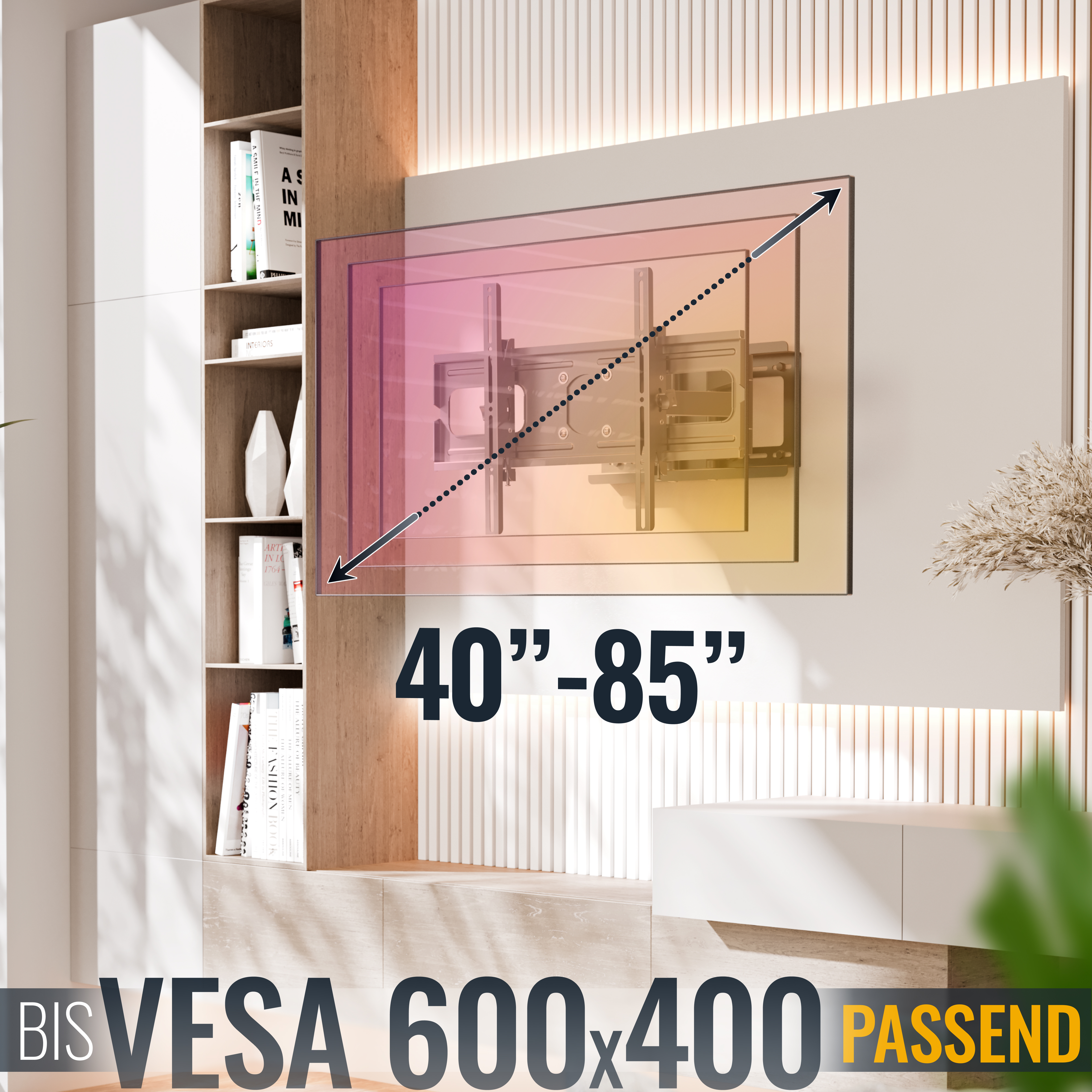 - Wandabstand: Wand <-> TV-Rückseite: min. 115mm - max. 545mm