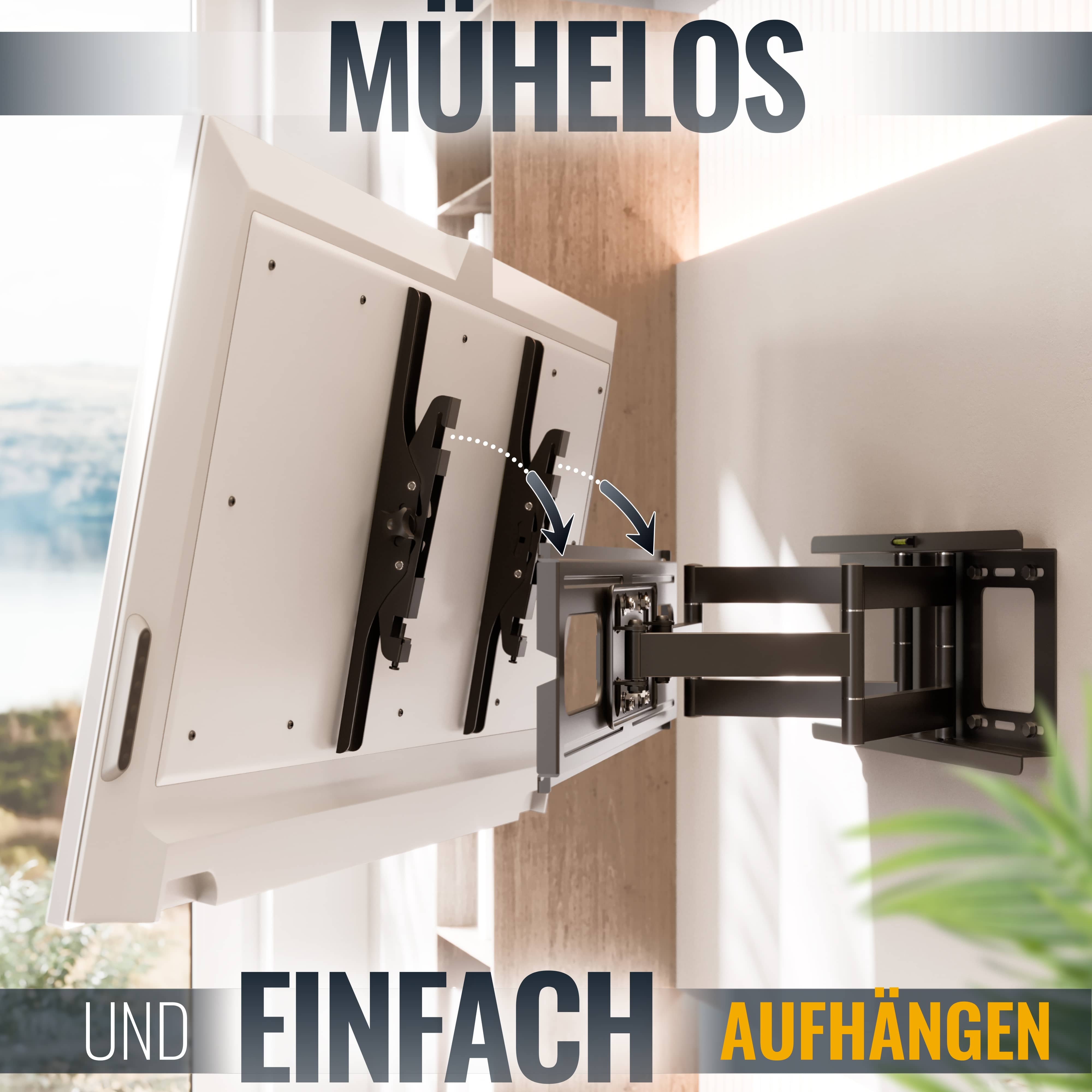 Da unter Anderem dieser Wandhalterung TV schwenkbar, neigbar und vollbeweglich bis ca. 32, 42, 47, 50 Zoll bis zu 85 Zoll Bildschirme passen, ist sie umfangreich kompatibel.