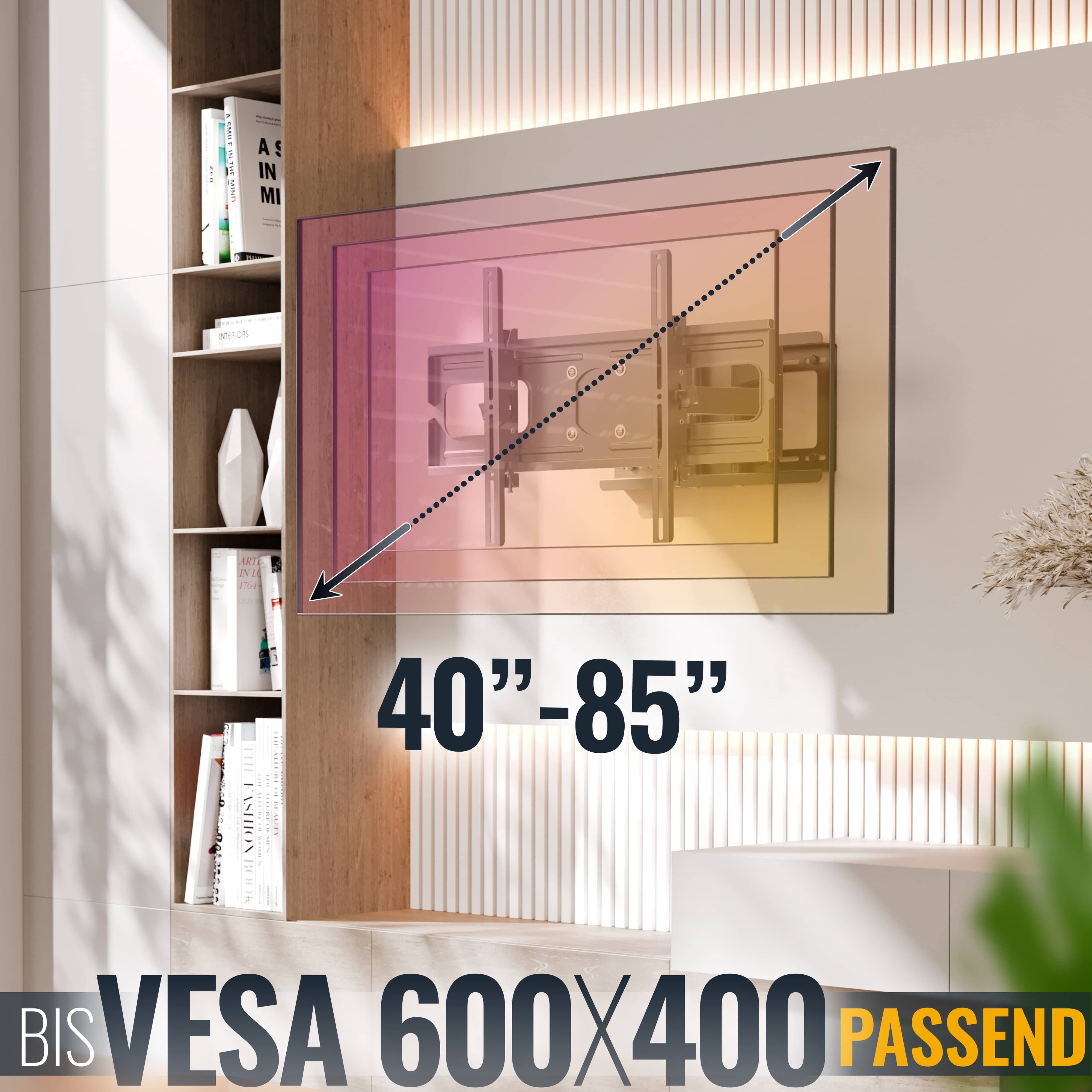 - Geeignet für TV-Geräte, PC-Monitore mit Bildschirmdiagonale ca. 102 - 216cm (40"-85"). Bitte die Lochabstände nachmessen! (Auch für größere Geräte passend. Einfach die Befestigungslöcher nachmessen.)