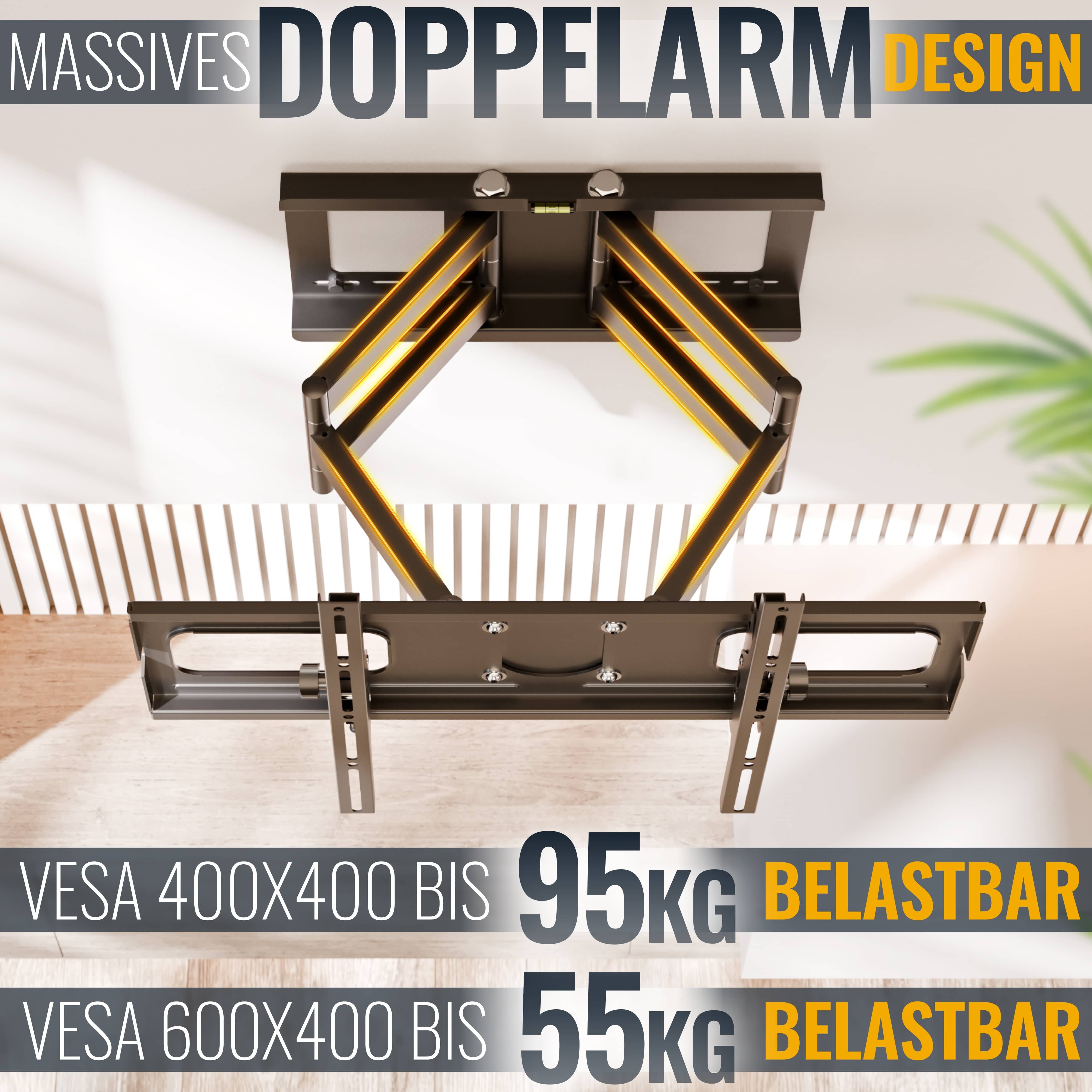 - Belastbar bis zu 95kg ( bis VESA 400x400) und 55kg ( bis VESA 600x400)