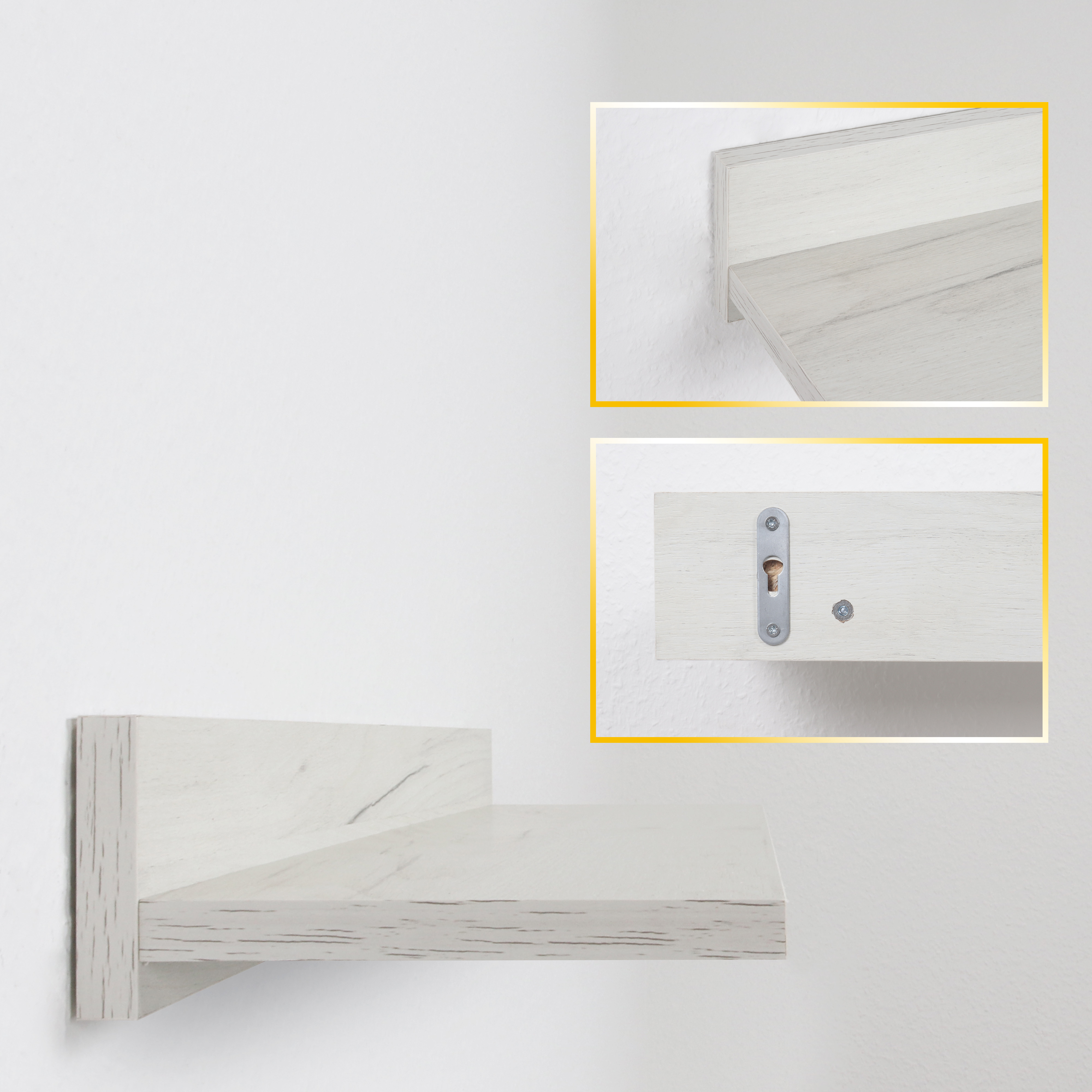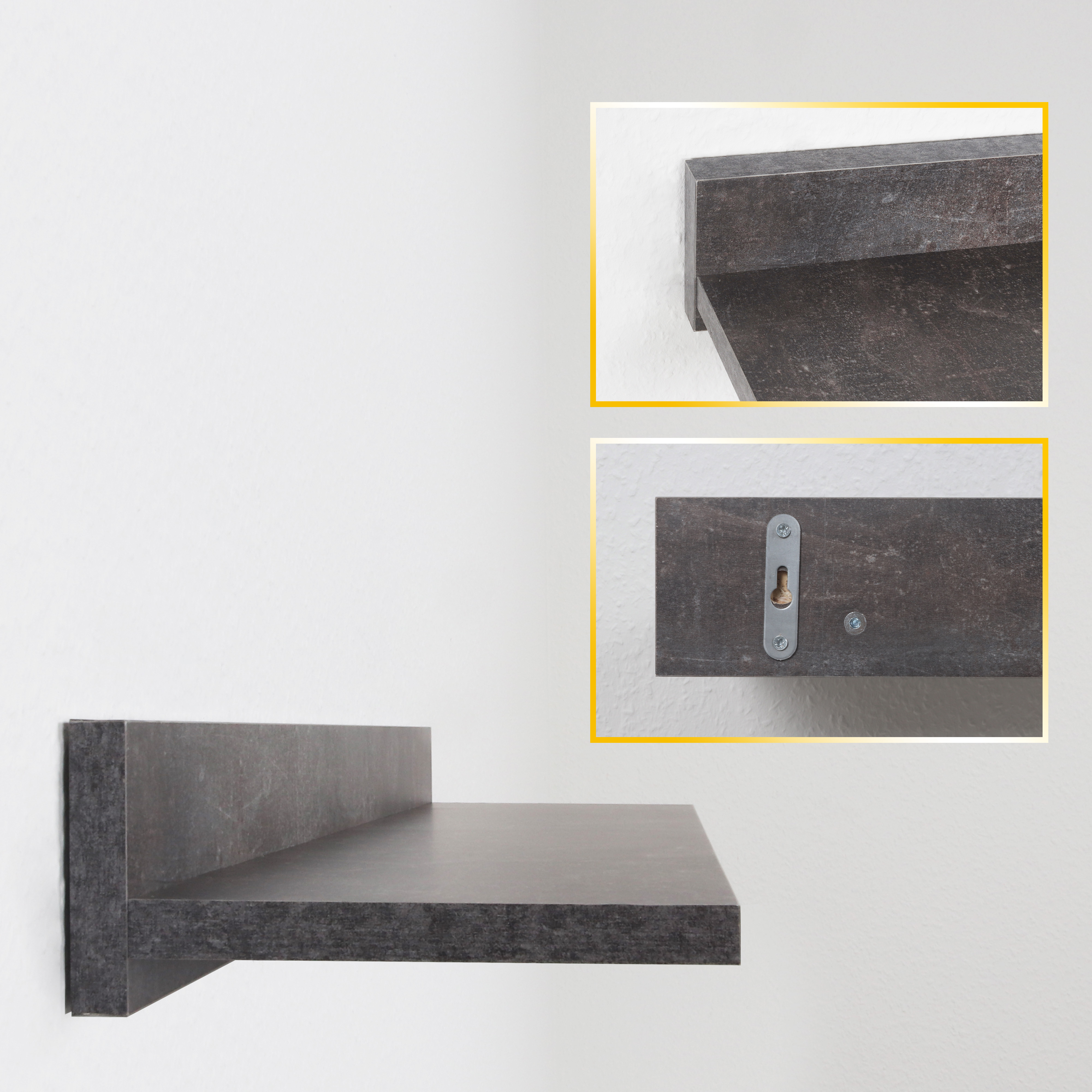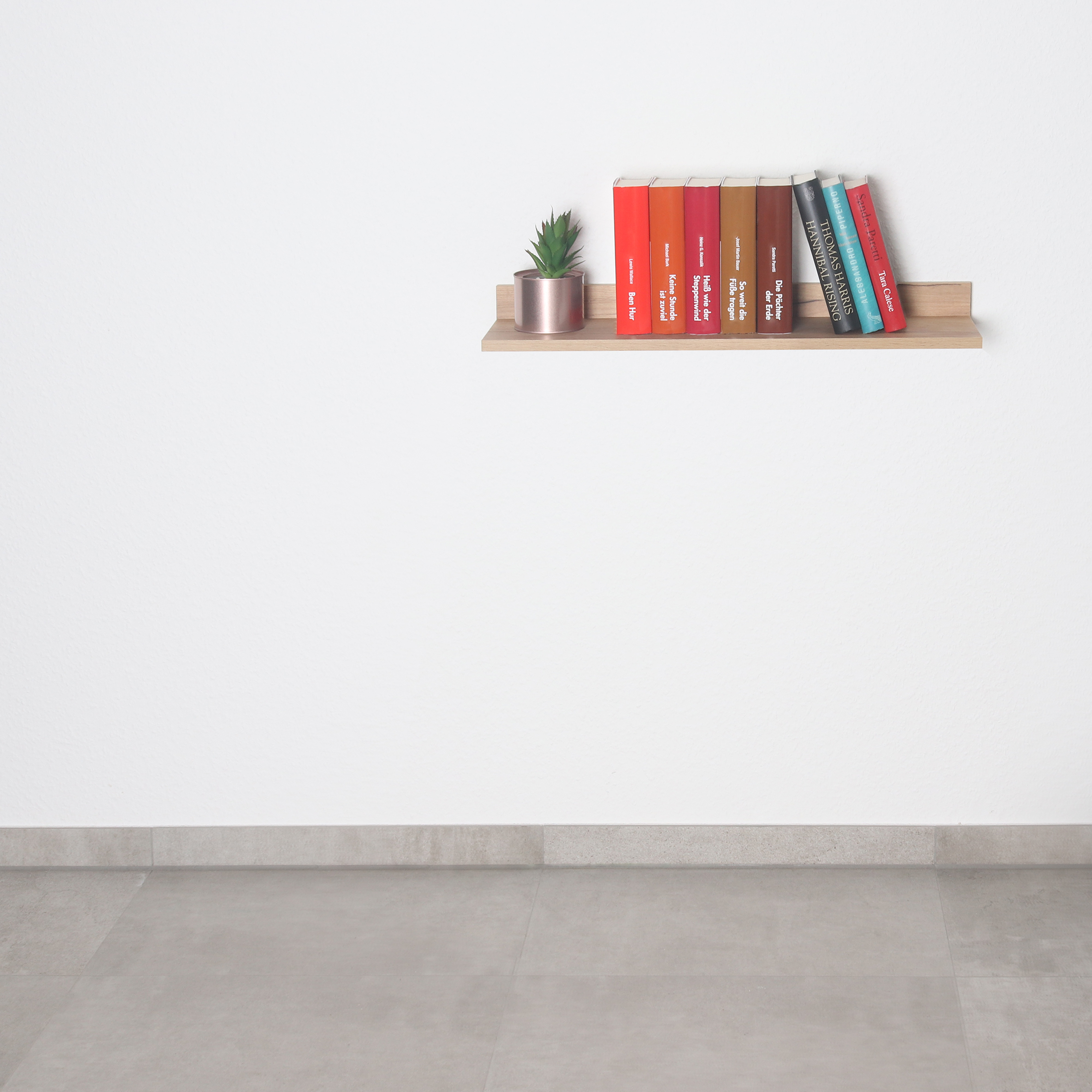 Dieses Modell ist ein kleines schwebendes Bücherregal zum Aufhängen an der Wand. Das Fach bietet viel Platz zur Aufbewahrung von Dekoration und mehr. Ideal fürs Wohnzimmer, Schlafzimmer, Kinderzimmer, Jugendzimmer, den Flur oder das Büro oder auch zur Küchenorganisation, z.B. als Gewürzregal oder Kräuterregal in der Küche. Das Wandboard bietet vielseitigen Stauraum. Die Fächer dienen als Ablage für Bücher, Spielzeug, Pflanzen, Deko, Lautsprecher. Auch als CD Ständer oder DVD Regal nutzbar. Innenliegende Verschraubungen und der Farbe entsprechende Schraubenabdeckungen runden das Design ab. Dieses Möbelstück ist modern, freischwebend und aus Pressspanplatten gefertigt. Es ist nur für den Innenbereich geeignet.