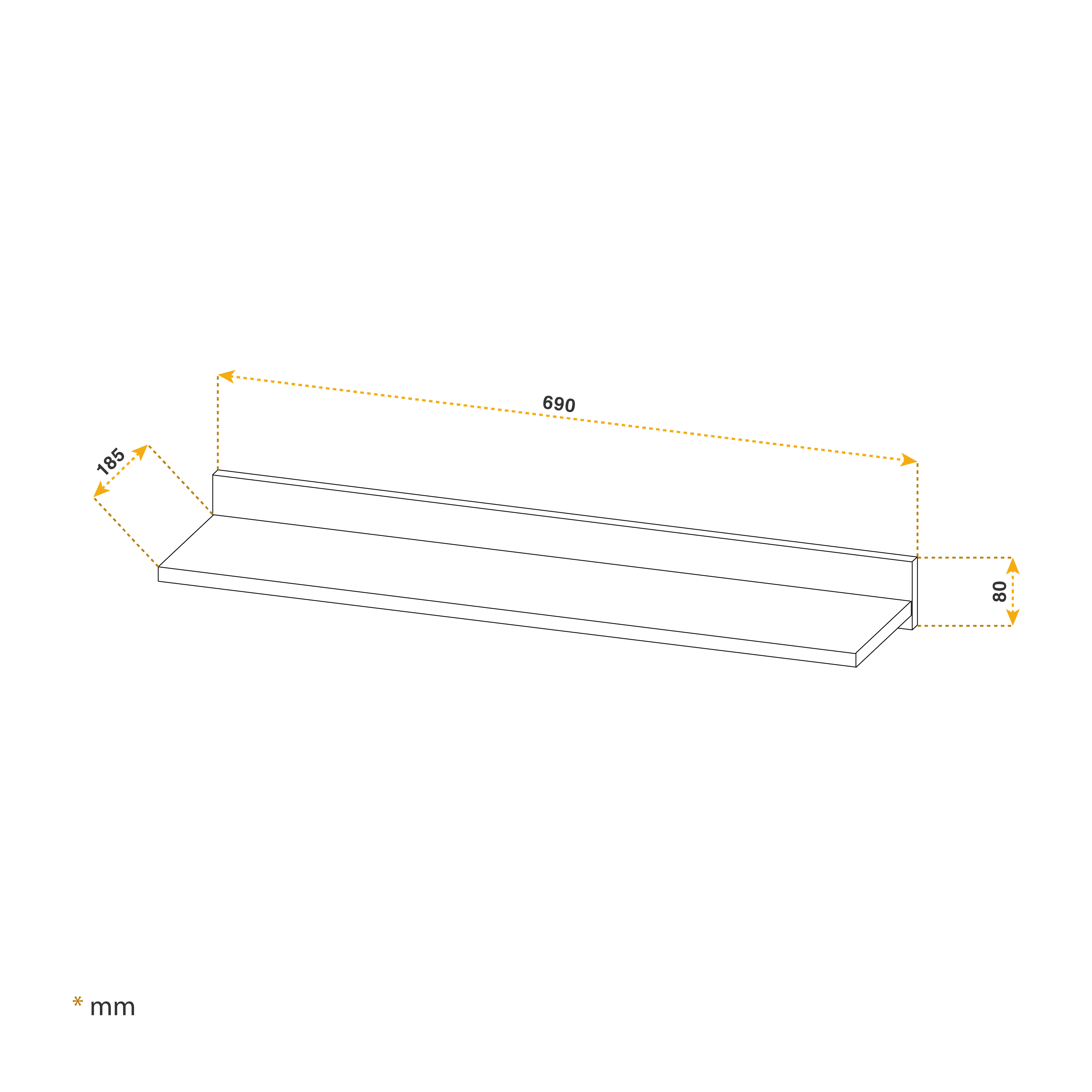 • Produktabmessung BxHxT: 690 x 80 x 185 mm