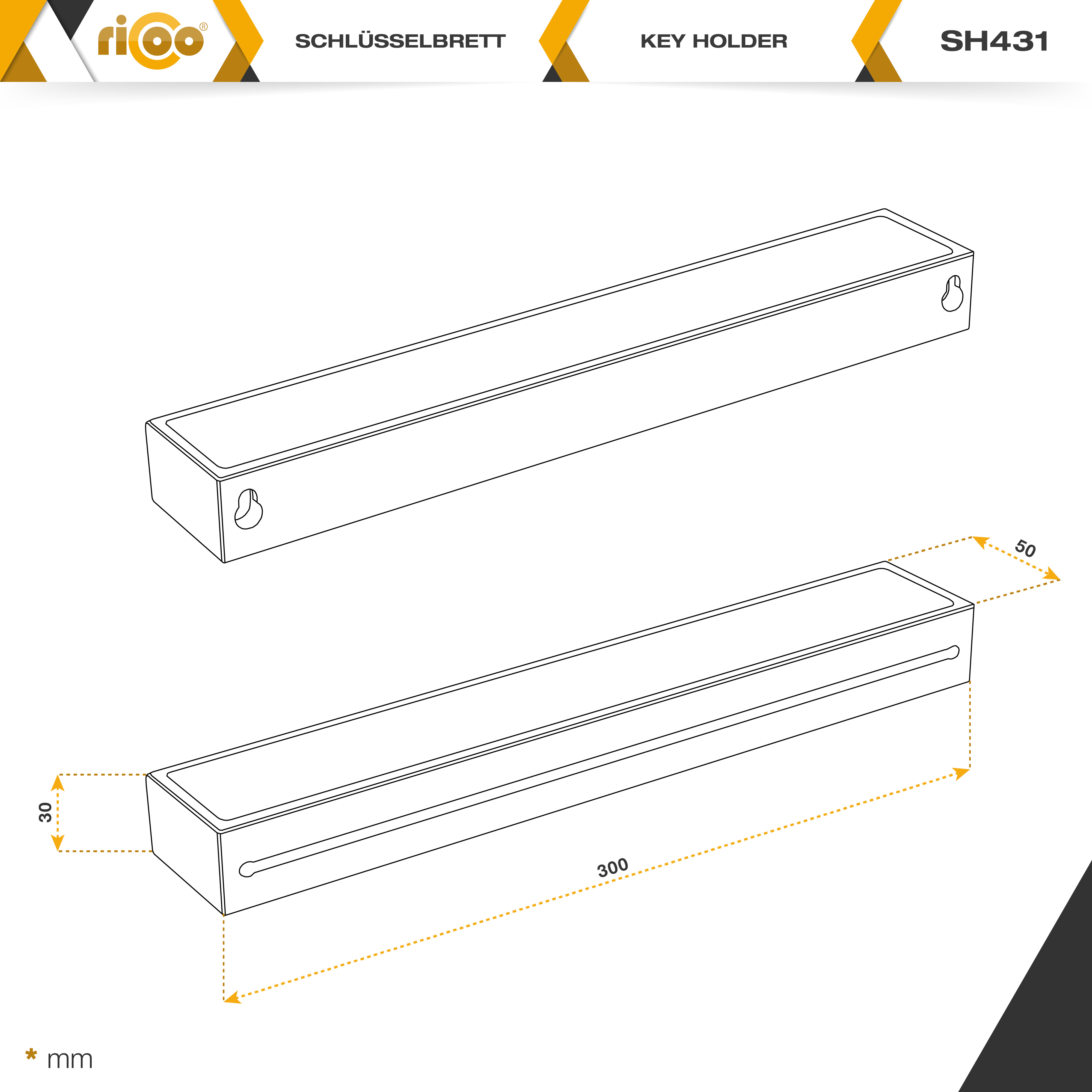 Hinweis: Das Modell SH44 ist baugleich zu diesem (SH43), allerdings etwas größer: LxBxH 35cm x 6cm x 3,5cm