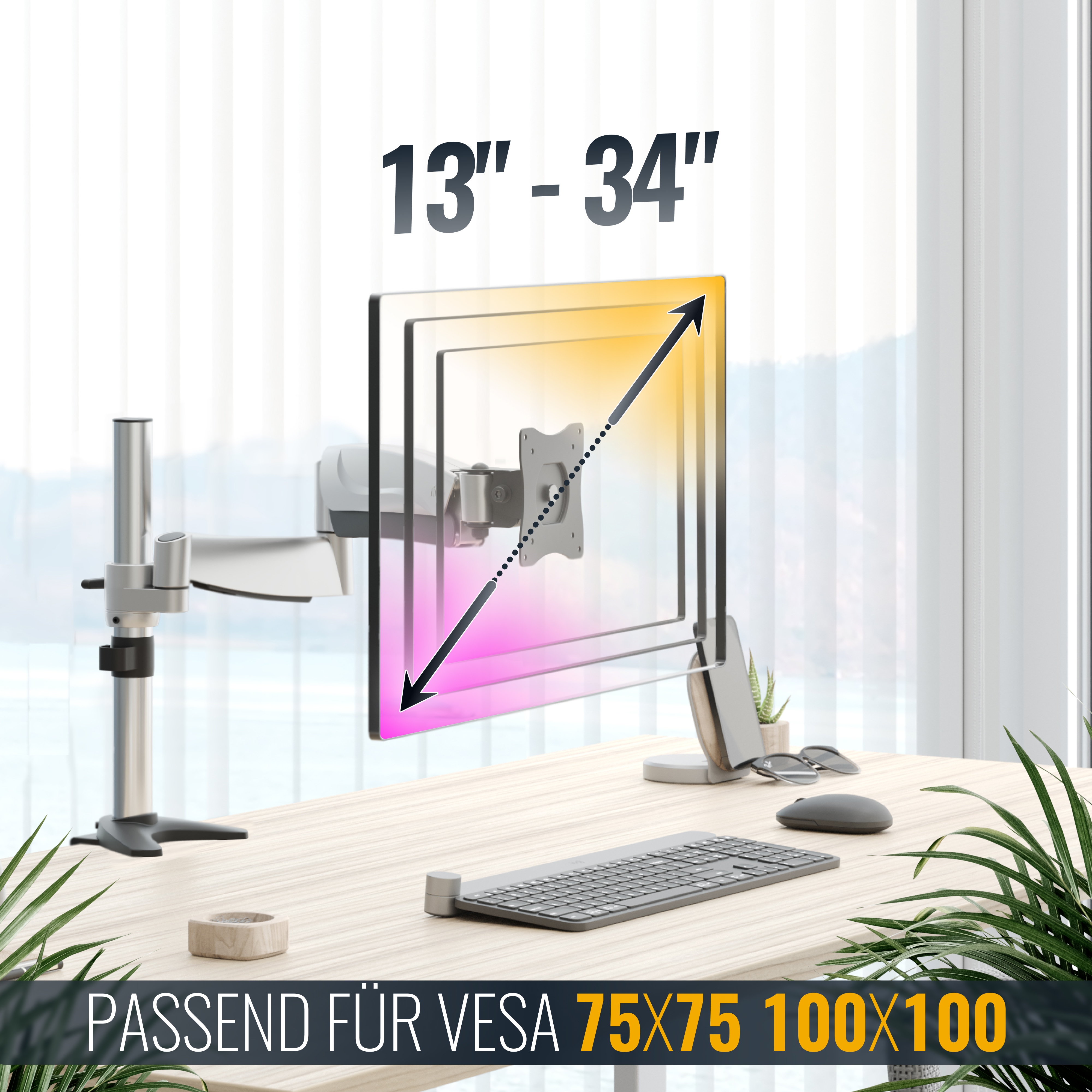 Alle Diagonal- und Zollangaben sind lediglich ungefähre Orientierungsangaben. Für die Kompatibilität kommt es auf folgende Gewindeloch-Abstände Ihres Bildschirms an: