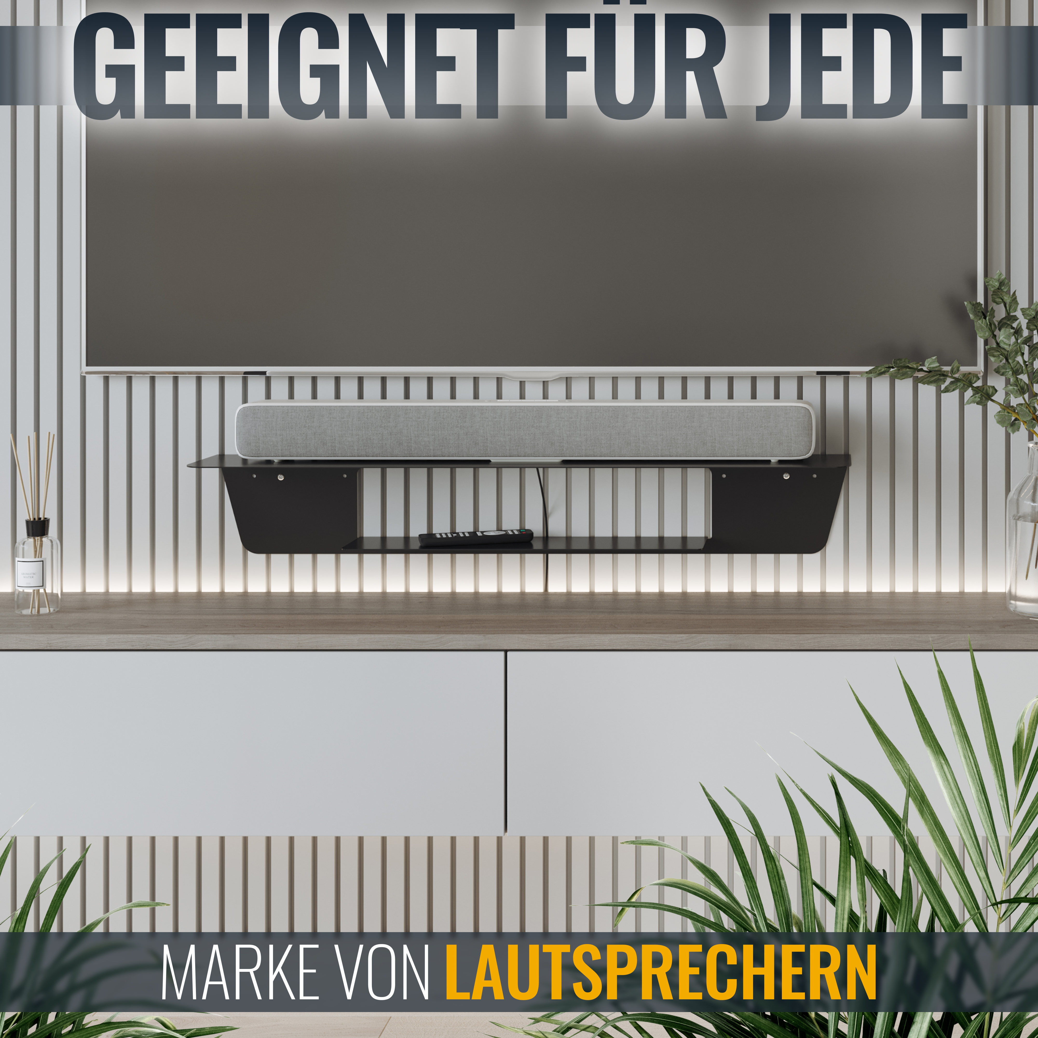 Sofern die Soundbar hingelegt werden kann und die Füße die Halterung nicht überragen, ist die Befestigung für jede Lautsprecher-Marke geeignet. Das maximale Belastungsgewicht beträgt 10 kg.