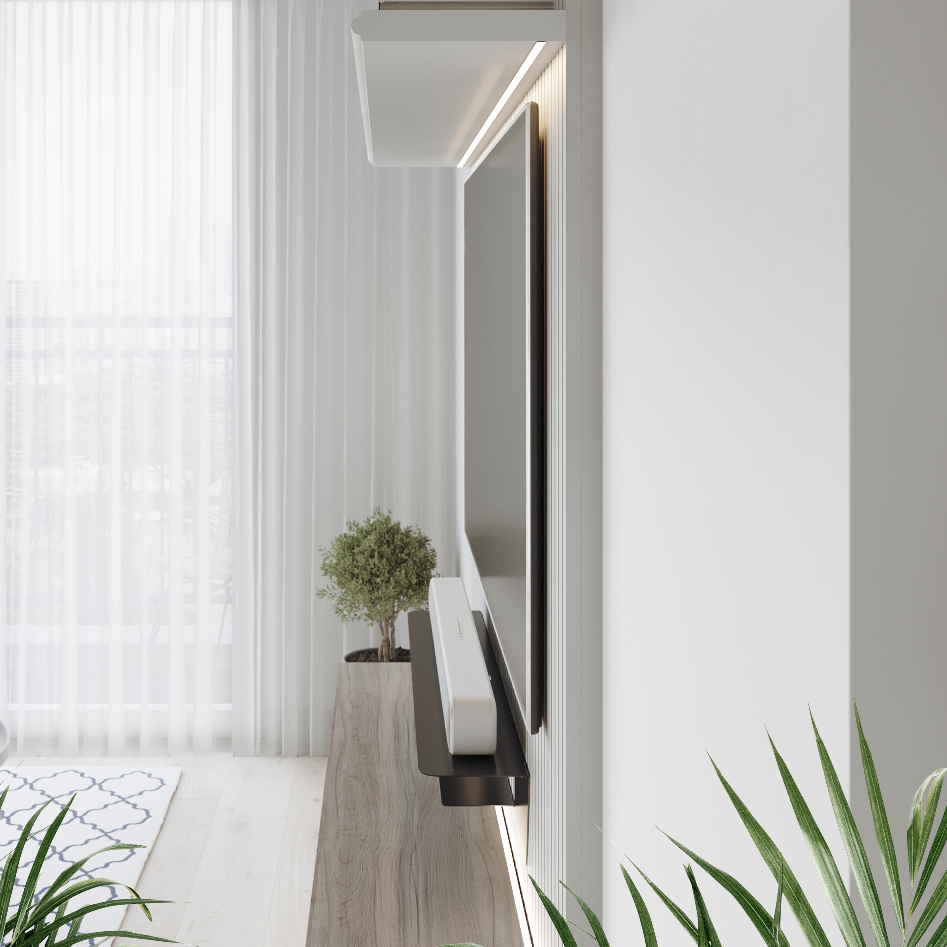 - Für die optische Harmonie empfiehlt sich eine Soundbar-Länge, die die Wandhalterung abdeckt