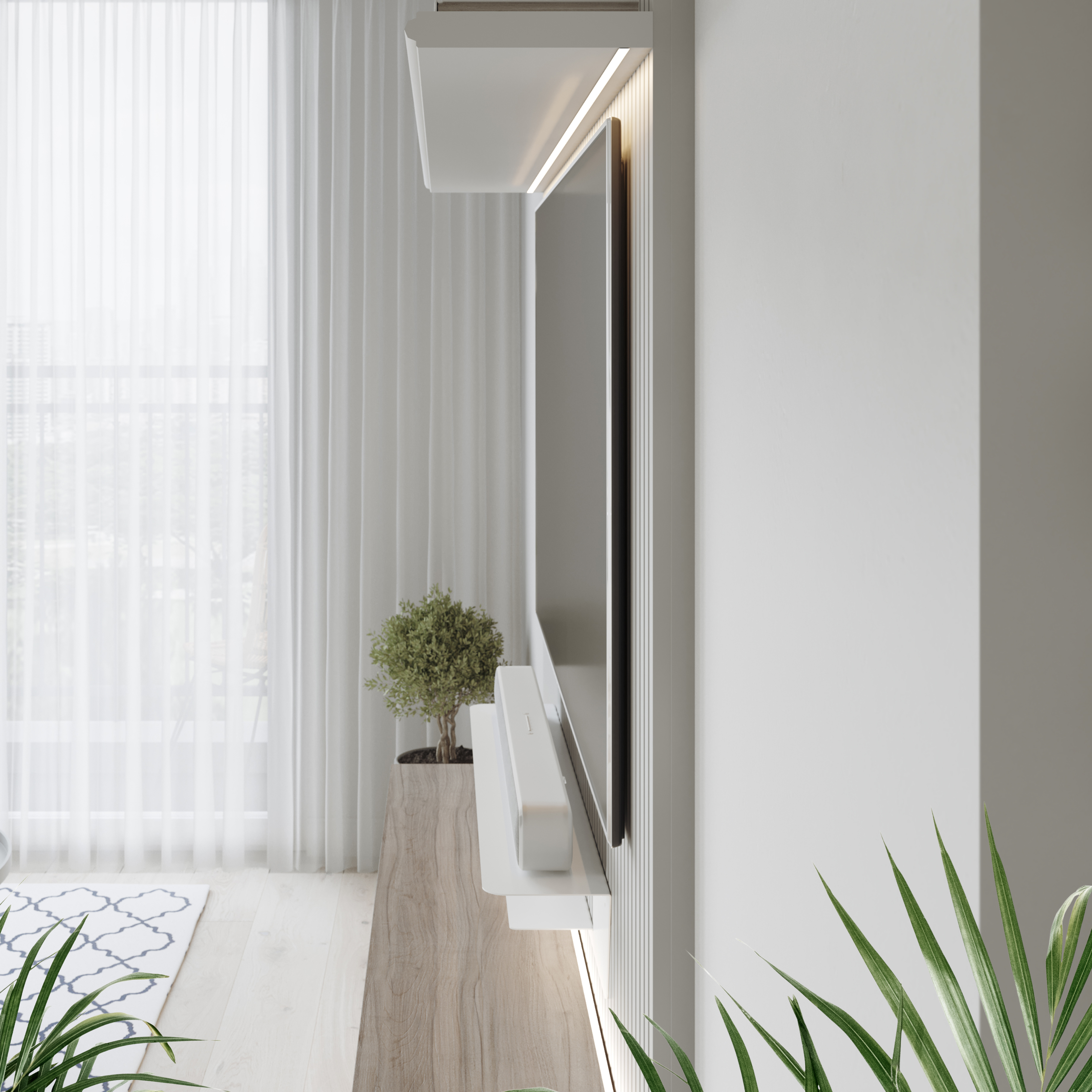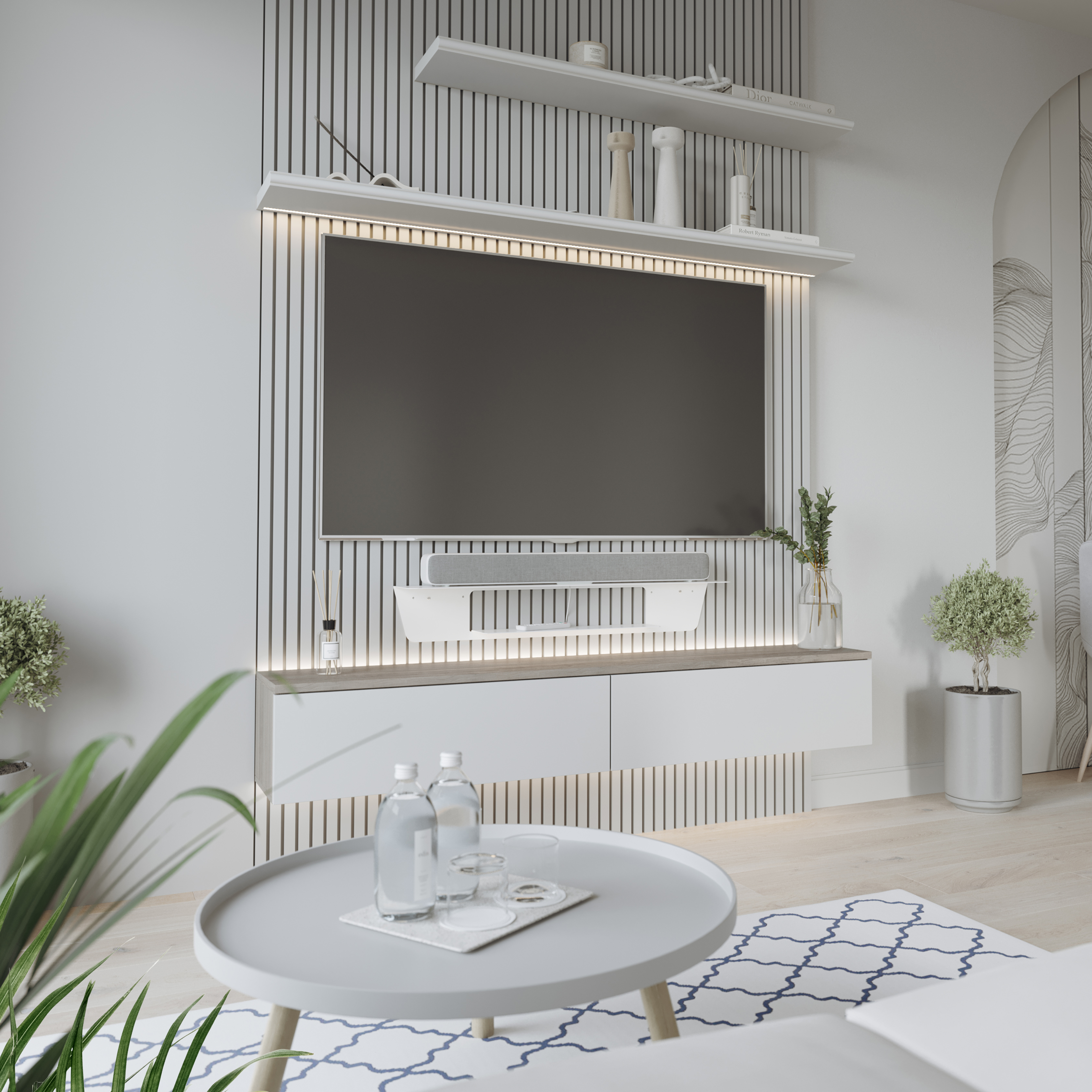 - Für die optische Harmonie empfiehlt sich eine Soundbar-Länge, die die Wandhalterung abdeckt