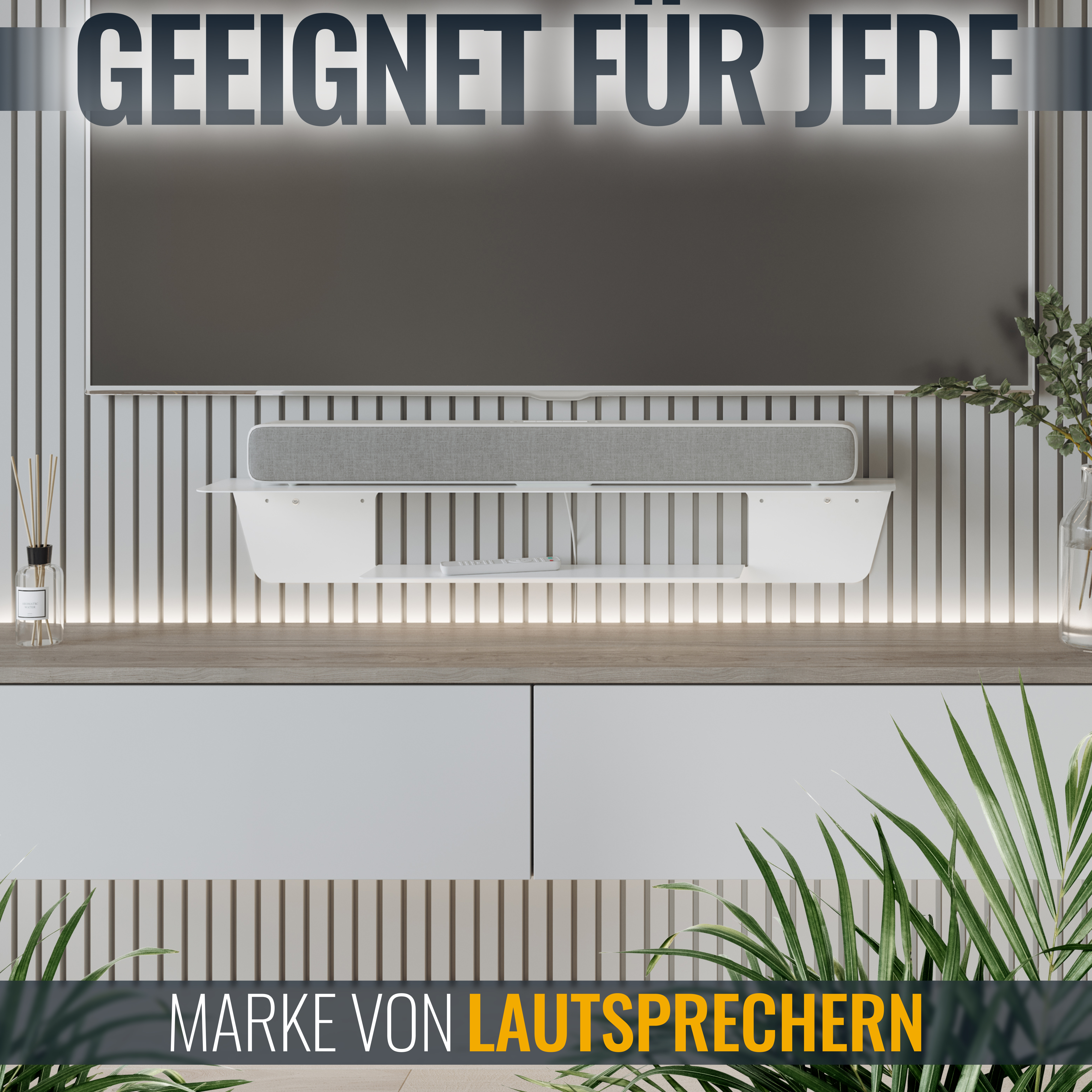 Sofern die Soundbar hingelegt werden kann und die Füße die Halterung nicht überragen, ist die Befestigung für jede Lautsprecher-Marke geeignet. Das maximale Belastungsgewicht beträgt 10 kg.