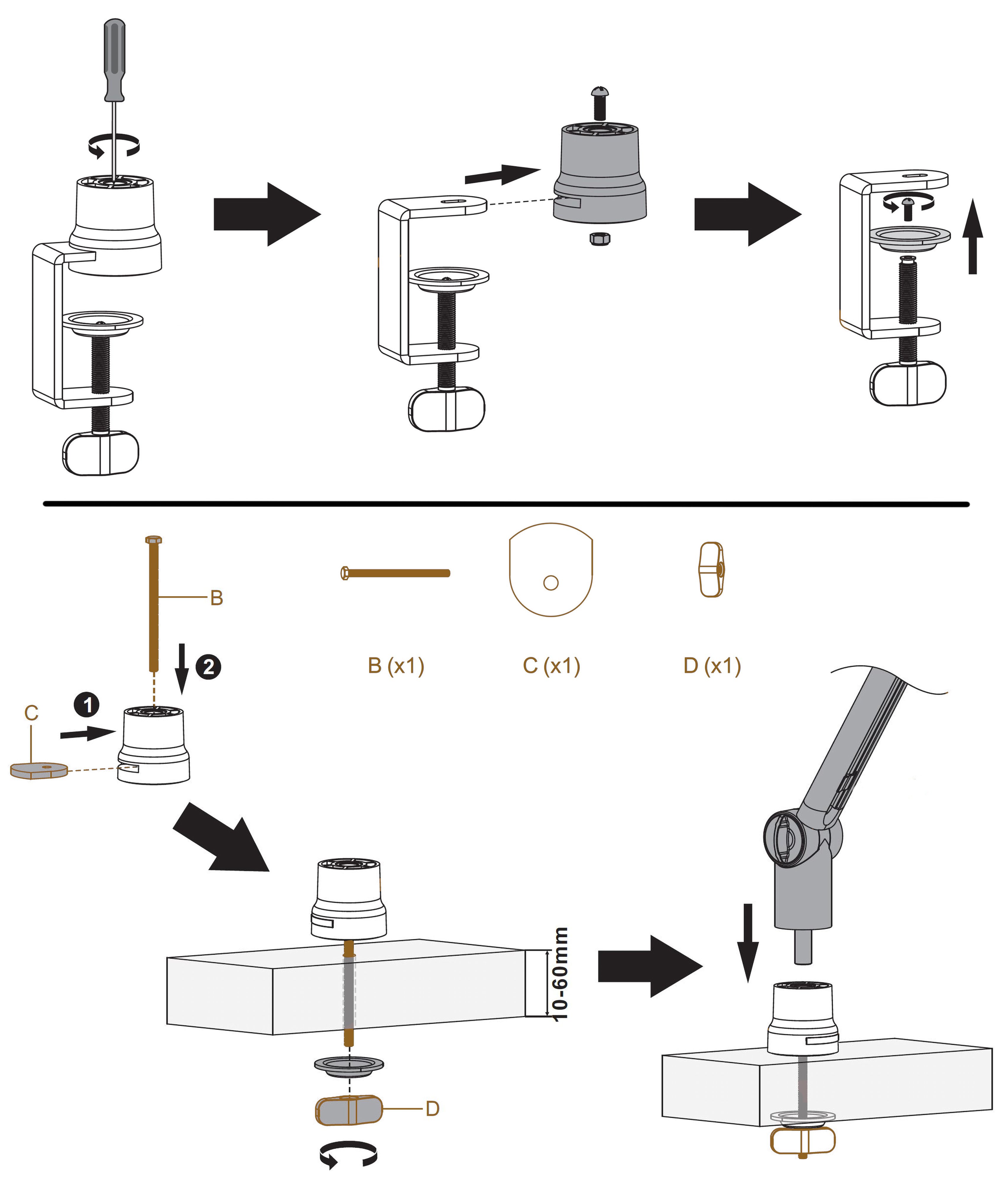 Die Tischlochmontage bietet Ihnen nicht nur eine platzsparende Lösung, sondern trägt auch dazu bei, Ihren Arbeitsplatz aufgeräumt zu halten. Dank der festen Verankerung in einem Tischloch haben Sie mehr Fläche auf Ihrem Schreibtisch zur Verfügung und können Ihre Ausrüstung effizienter organisieren.