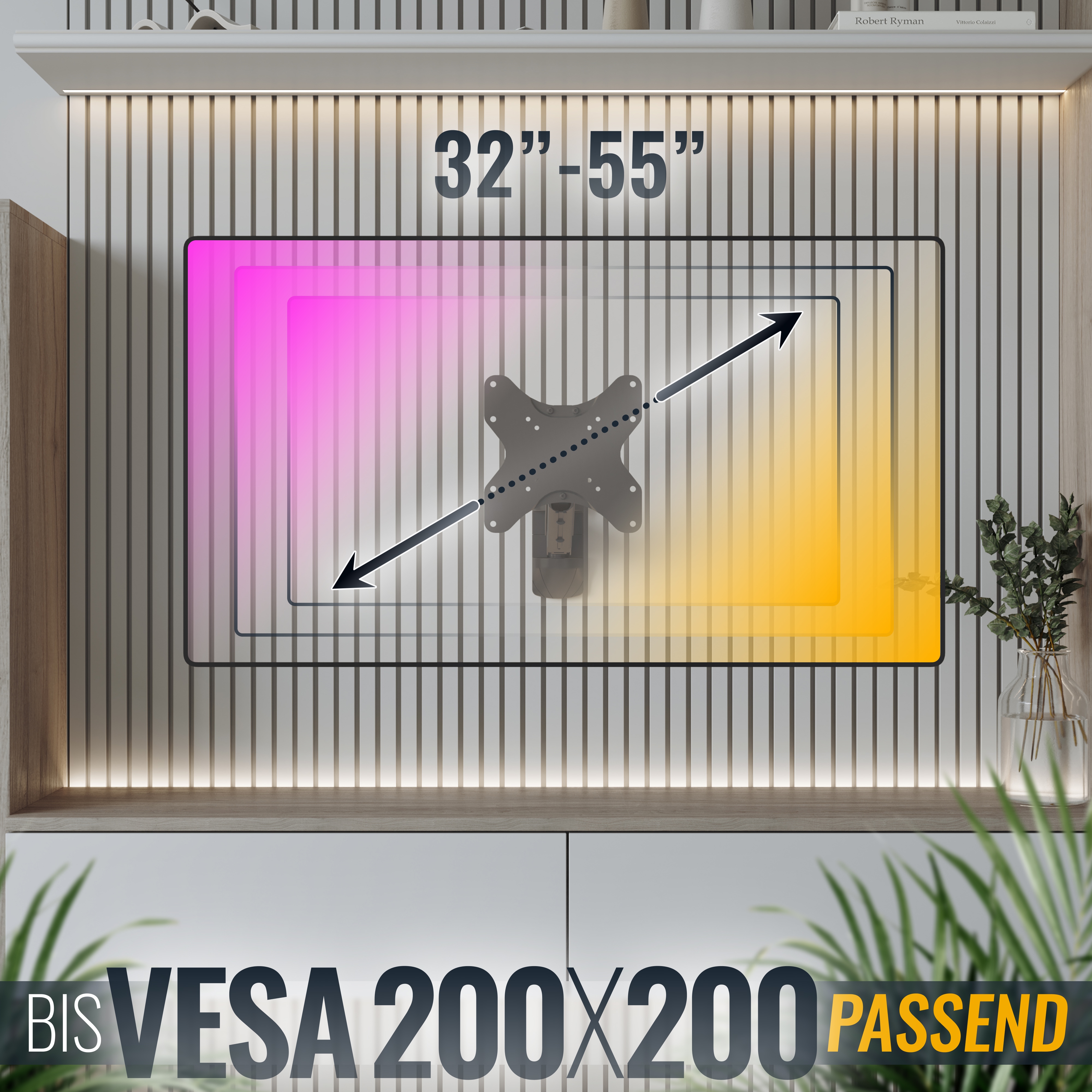 - Lieferumfang: Wandhalterung (vormontiert), komplettes Montage-Zubehör inkl. TV-Schraubenset