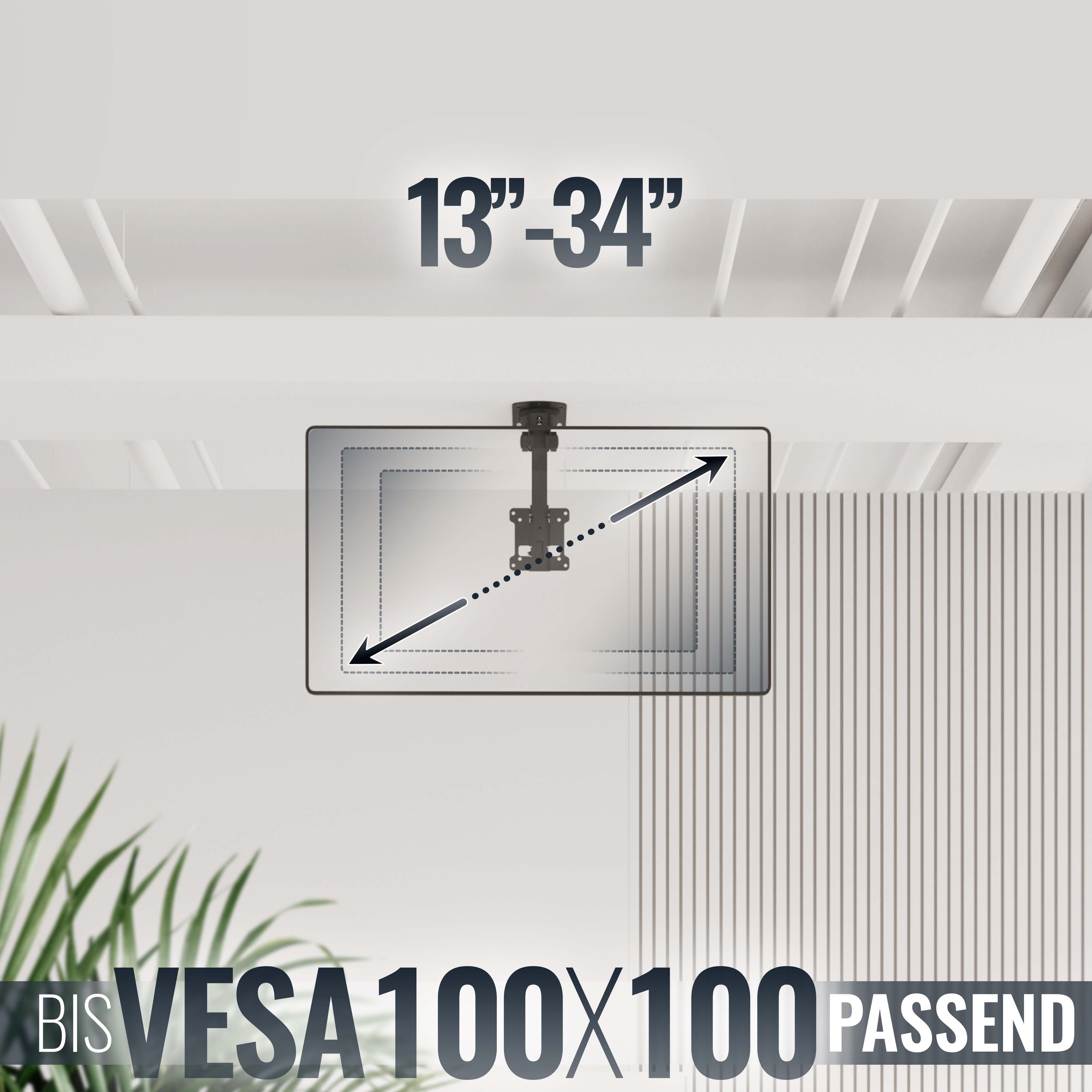 20 Kg trägt der Fernseher Deckenhalter mit ca. 13 - 27" gefestigt an der Wand. Die VESA-Muster sind die wichtigsten Indikatoren, dass TV Halterung und Gerät zusammenpassen. Das Design ist angenehm konzipiert und passt somit wunderbar in jedes Schlaf- und Wohnzimmer.
