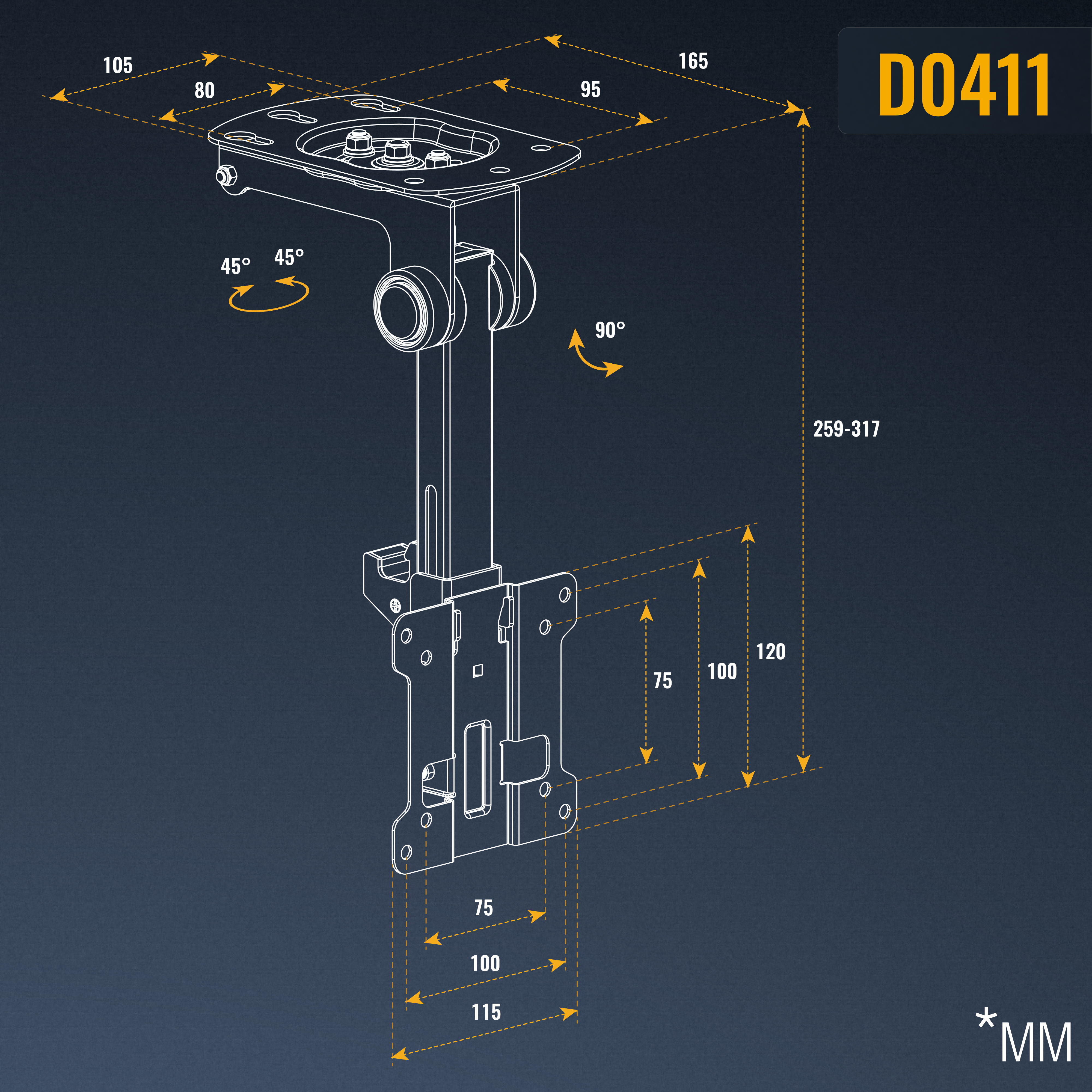 • ausziehbar von 165mm - 270mm (von der Decke bis Unterkante der VESA-Platte)
