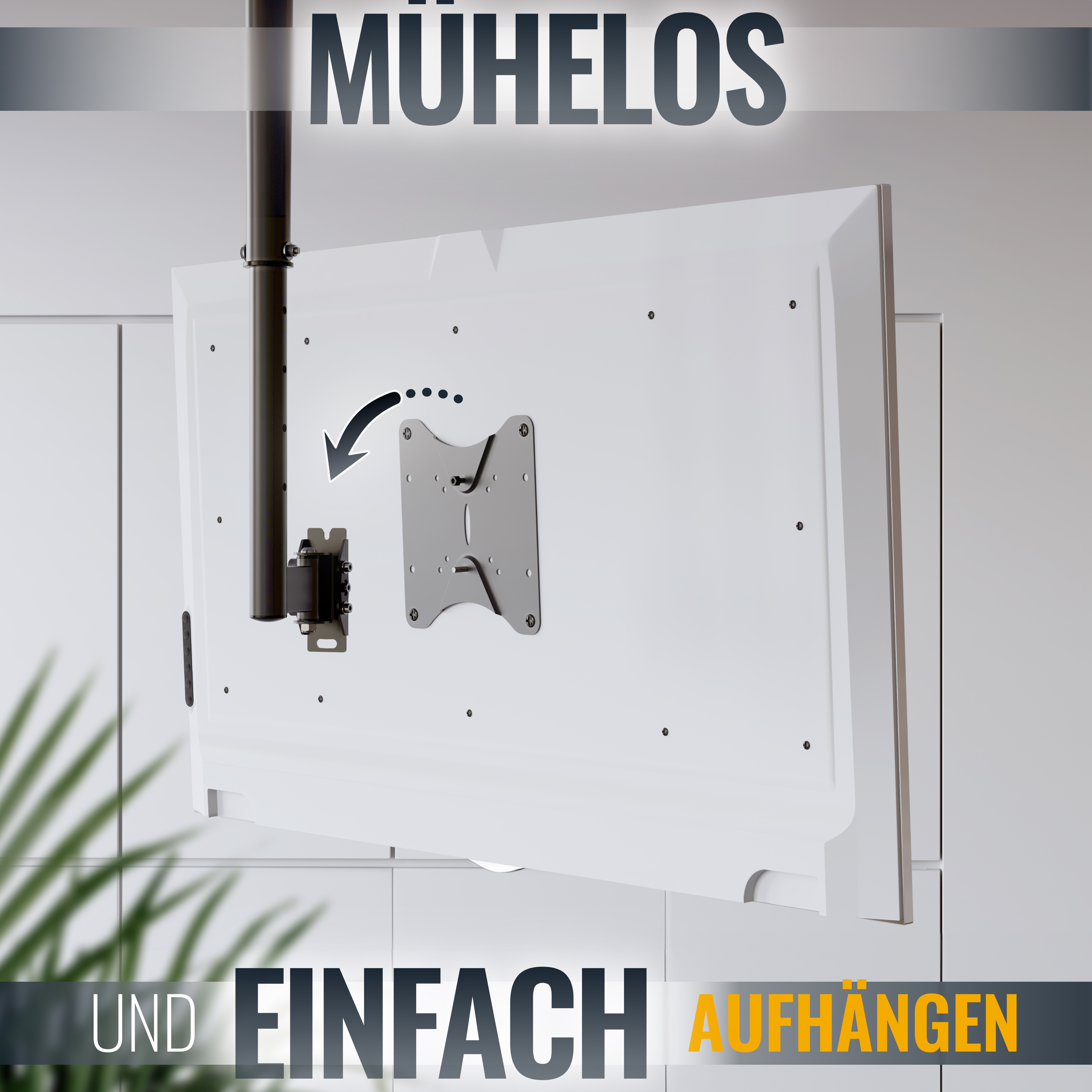 Mit dieser clever im Teleskop-Arm versteckten Kabelführung sortieren Sie Ihre Kabel harmonisch und unsichtbar durch die Halterung entlang zur Decke.