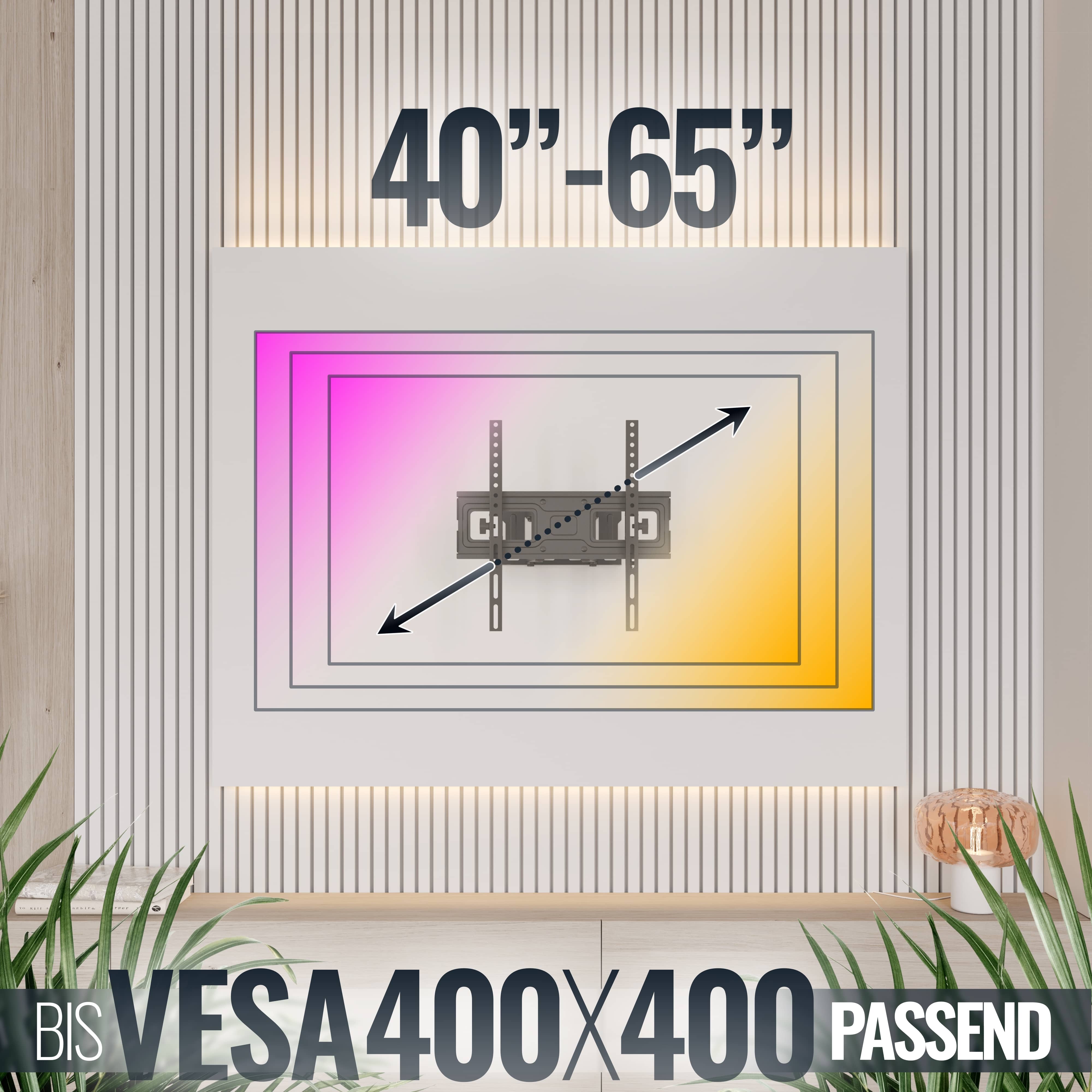 • Geeignet für TV-Geräte, PC-Monitore mit Bildschirmdiagonale ca.100-140cm (40"-55"). Bitte die Lochabstände nachmessen! (Auch für größere Geräte passend. Einfach die Befestigungslöcher nachmessen)