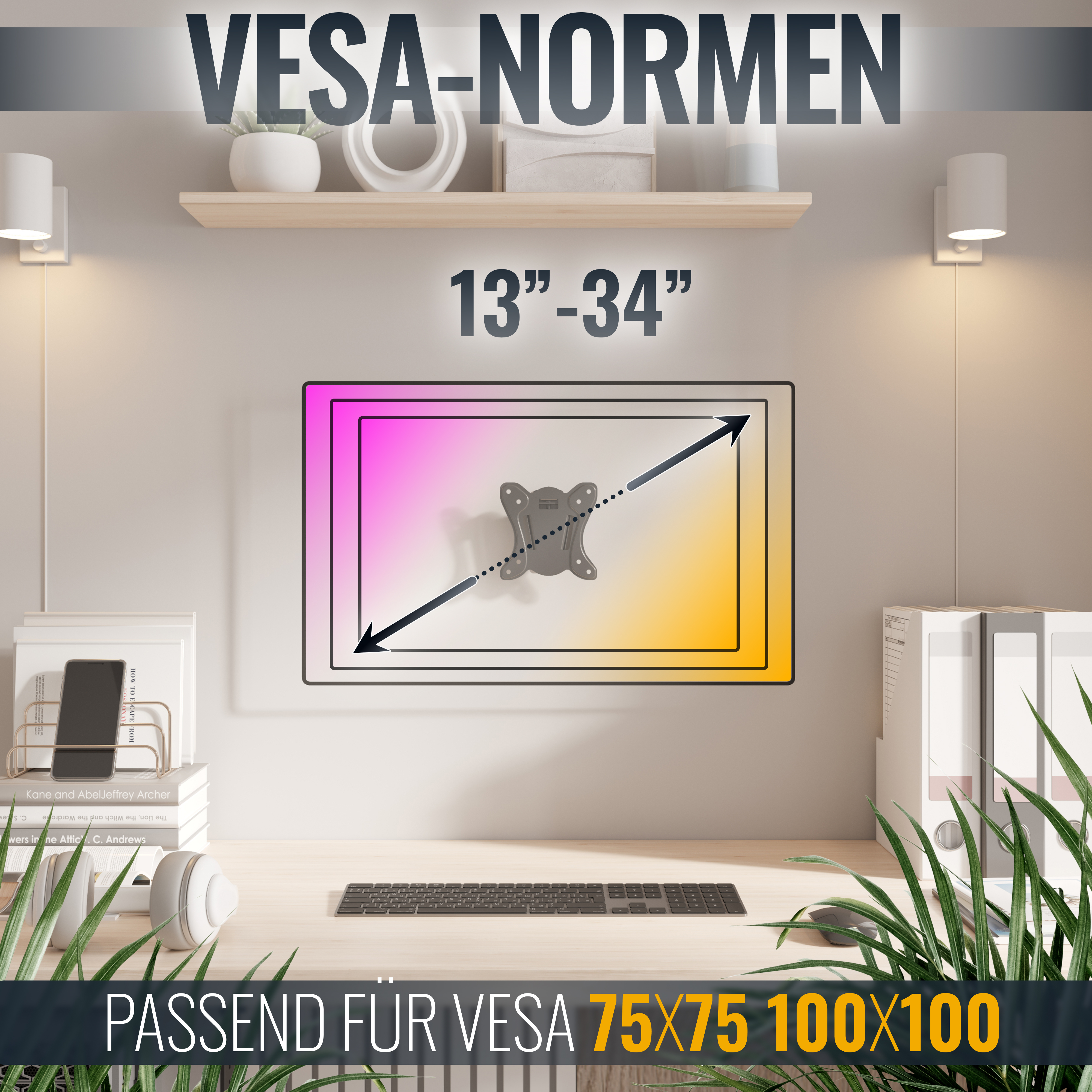 - Unterstützte VESA-Normen (in mm): 75x75 | 100x100