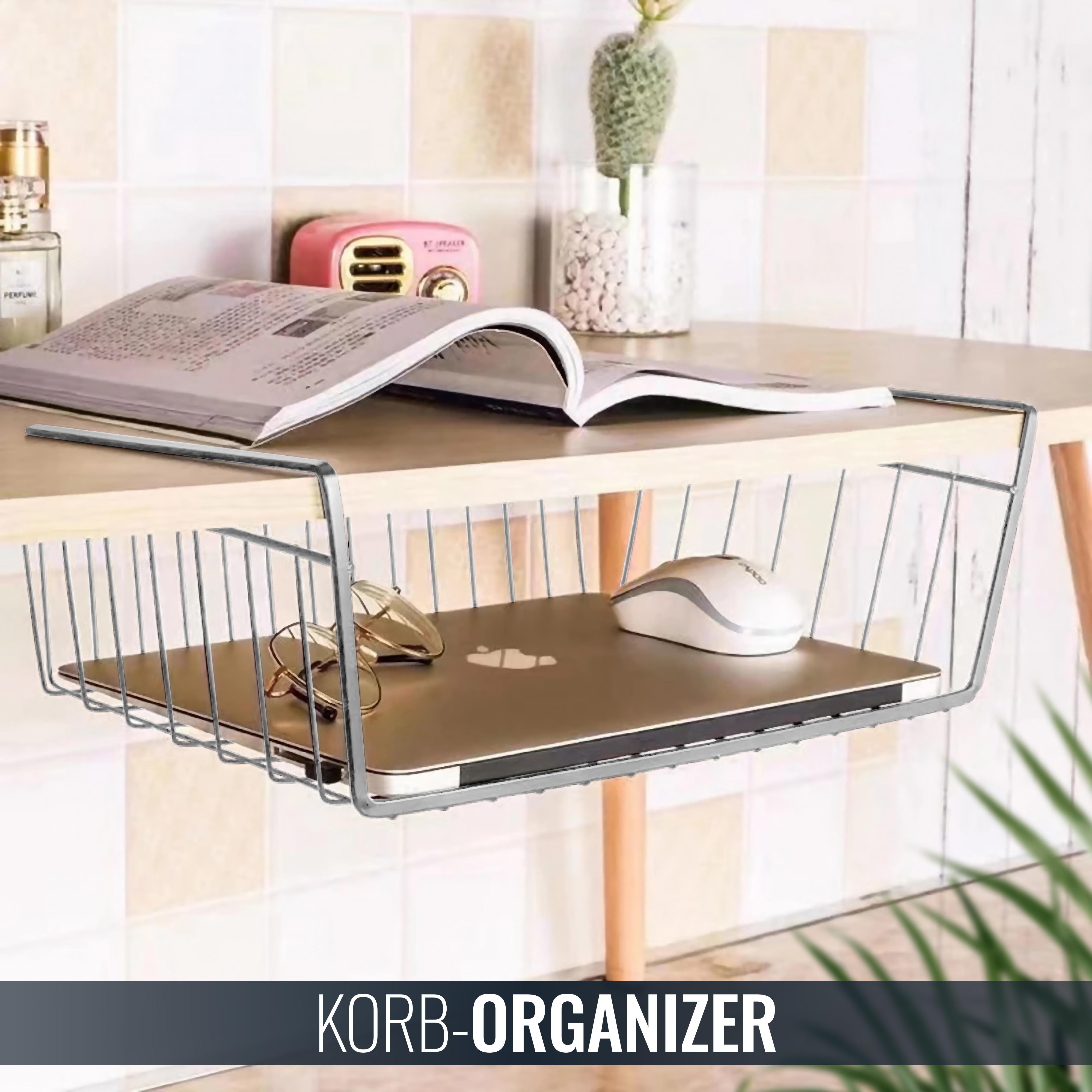 Der Korb-Organizer wird einfach an einem Regalboden befestigt und ermöglicht so eine platzsparende und übersichtliche Aufbewahrung von verschiedenen Gegenständen. Das clevere Design sorgt dafür, dass der Korb auch bei maximaler Beladung stabil hängt und keine Gefahr besteht, dass er sich vom Regalboden löst.