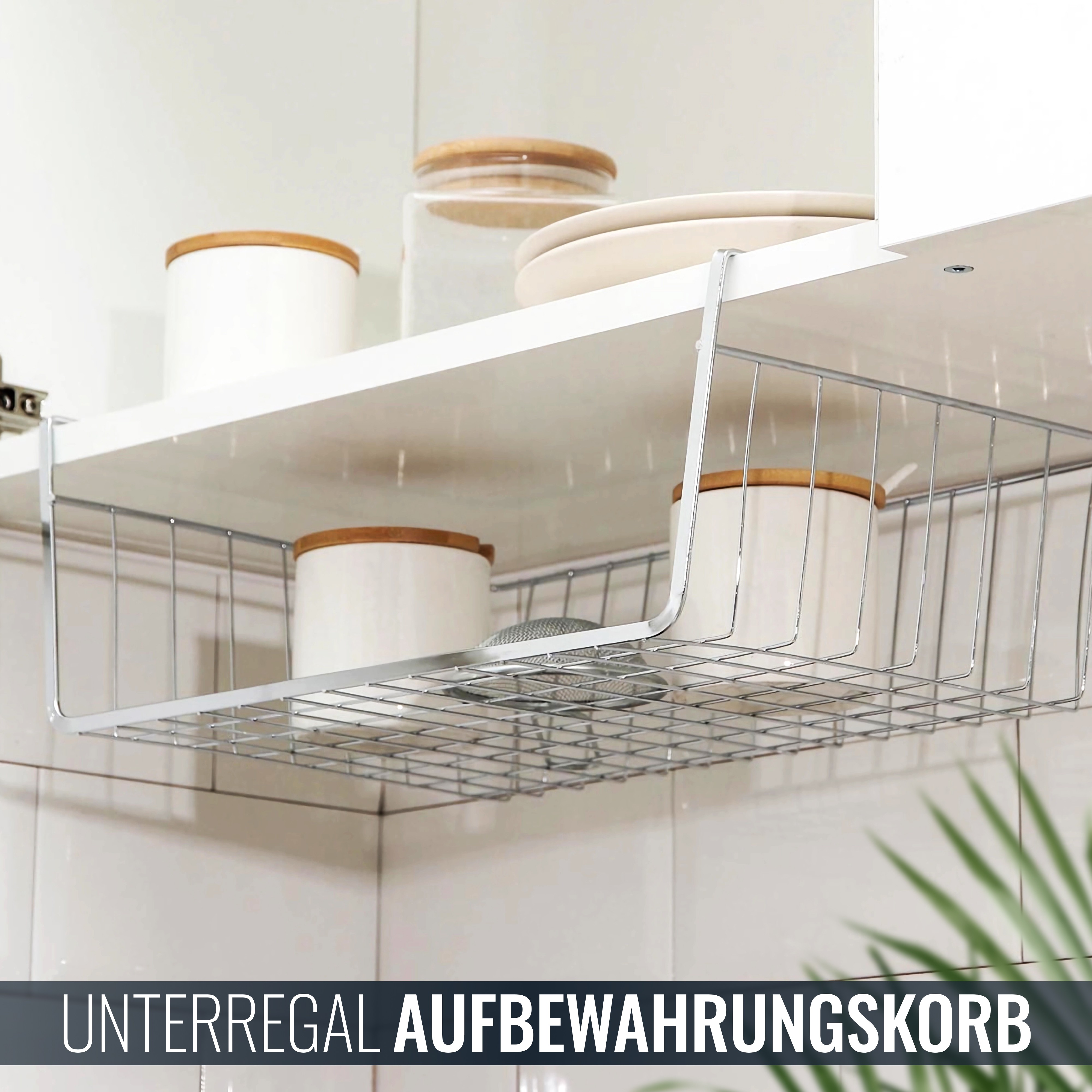 Unser Unterregal Aufbewahrungskorb eignet sich perfekt für alle, die in ihrer Küche oder Speisekammer Platz sparen möchten und dennoch eine organisierte Aufbewahrung bevorzugen. Mit diesem Hängekorb haben Sie Ihre Utensilien immer griffbereit und sparen sich die Suche in Schränken und Schubladen. Geliefert werden zwei Stück Aufbewahrungskorbe aus Metall.
