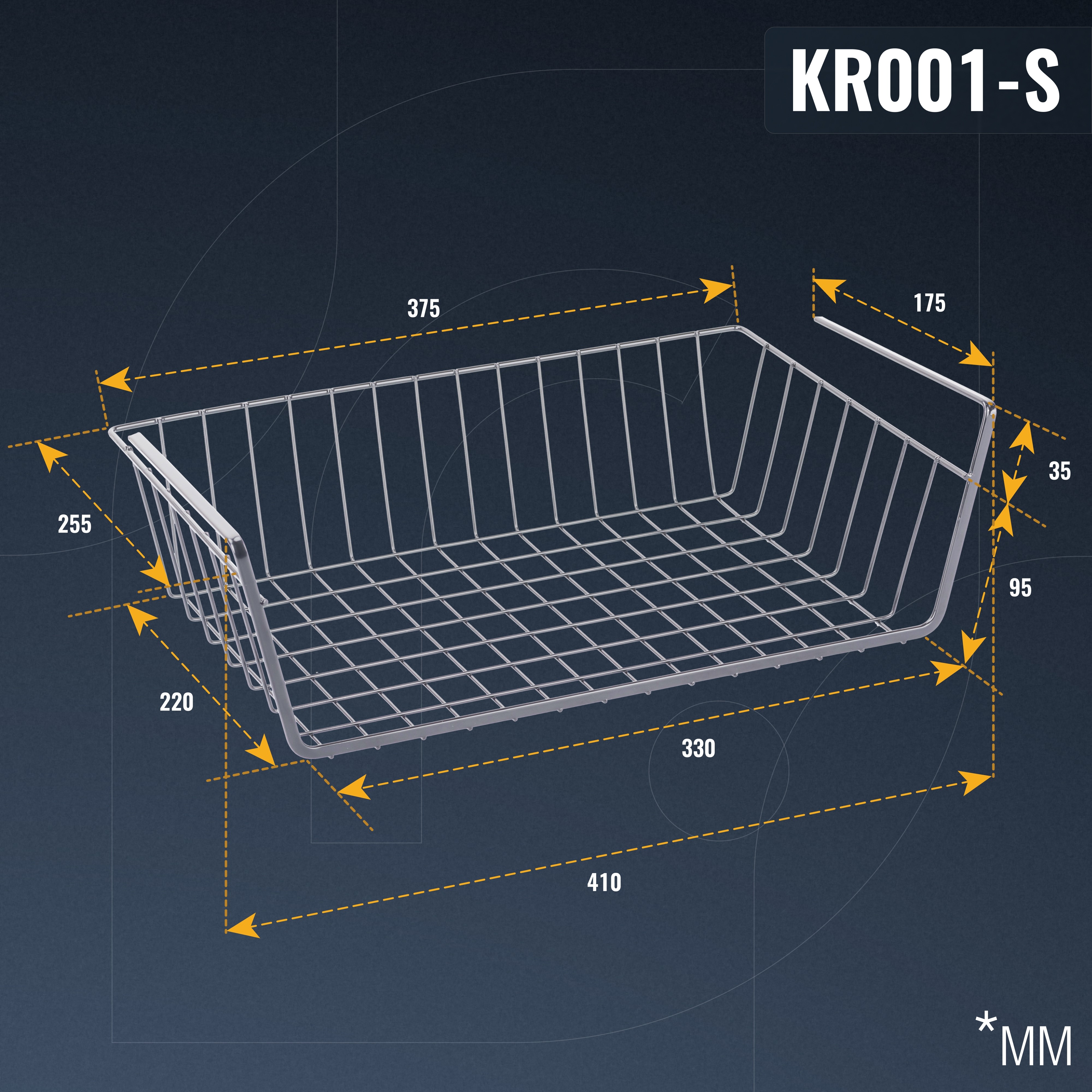 Unser Unterregal Aufbewahrungskorb in silber oder schwarz (pulverbeschichtet) ist ein praktischer Hängekorb für die Küche oder Speisekammer. Mit den Maßen vom Korb BxHxT: 37,5 x 9,5 x 22 cm (Produktmaße gesamt BxHxT: 41 x 13 x 25,5 cm) bietet er ausreichend Platz für diverse Küchenutensilien wie beispielsweise Gewürze, Tüten oder auch Frischhaltefolie und Alufolie. Unterregal Aufbewahrungskorb.