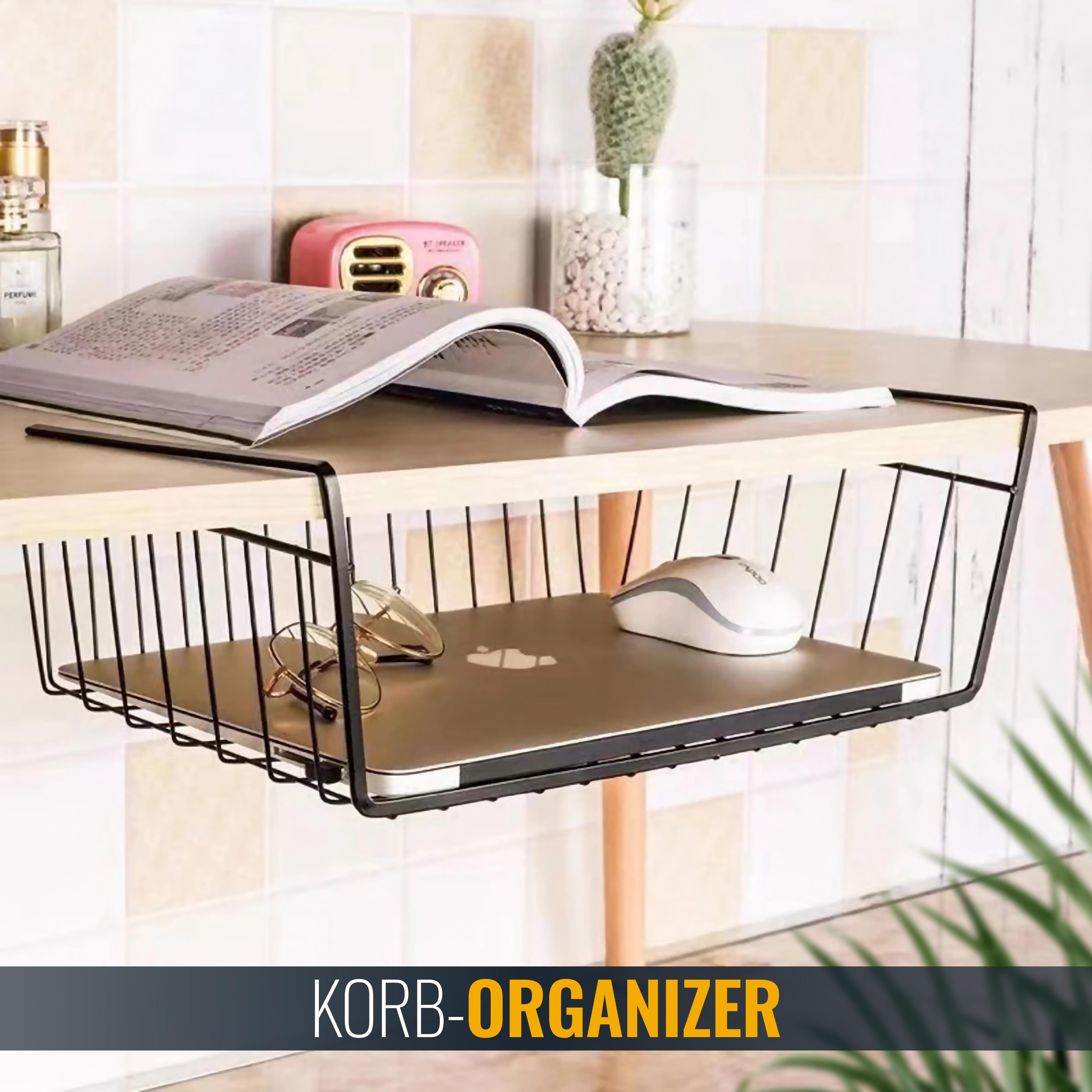 Der Korb-Organizer wird einfach an einem Regalboden befestigt und ermöglicht so eine platzsparende und übersichtliche Aufbewahrung von verschiedenen Gegenständen. Das clevere Design sorgt dafür, dass der Korb auch bei maximaler Beladung stabil hängt und keine Gefahr besteht, dass er sich vom Regalboden löst.