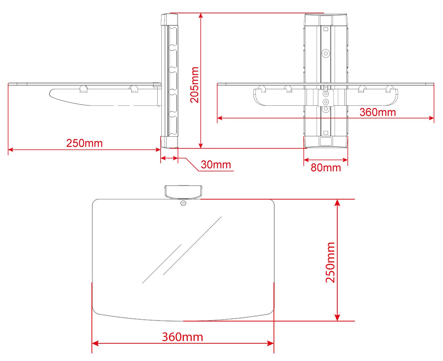 Wandhalterung-Hifi Halterung mit Glas Rack Glaswandregal DVD-1