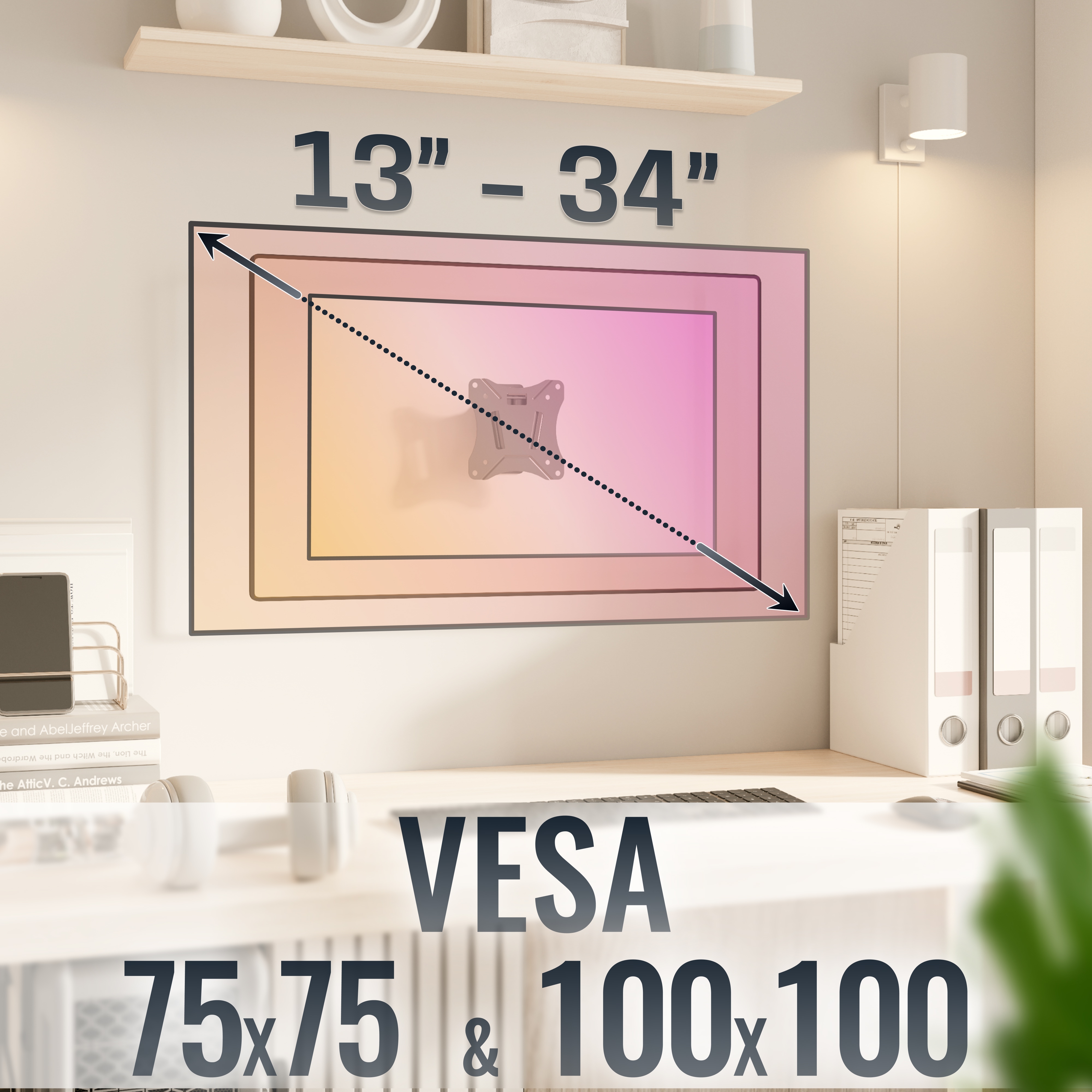 Alle Diagonalangaben in der Artikelbezeichnung / Beschreibung / Produktverpackung sind ungefähre Orientierungsangaben. Für die Wahl der Bildschirmhalterung ist nicht die Bildschirmdiagonale entscheidend, sondern die VESA-Norm (Lochabstände am Fernseher). Diese Halterung ist auch für Bildschirme geeignet, deren Diagonale kleiner oder größer ist als in der Produktbeschreibung angegeben. Es muss nur gewährleistet sein, dass die VESA-Lochabstände innerhalb dem von der Halterung unterstützten Bereich liegen und das max. Belastungsgewicht der Halterung nicht überschritten wird.